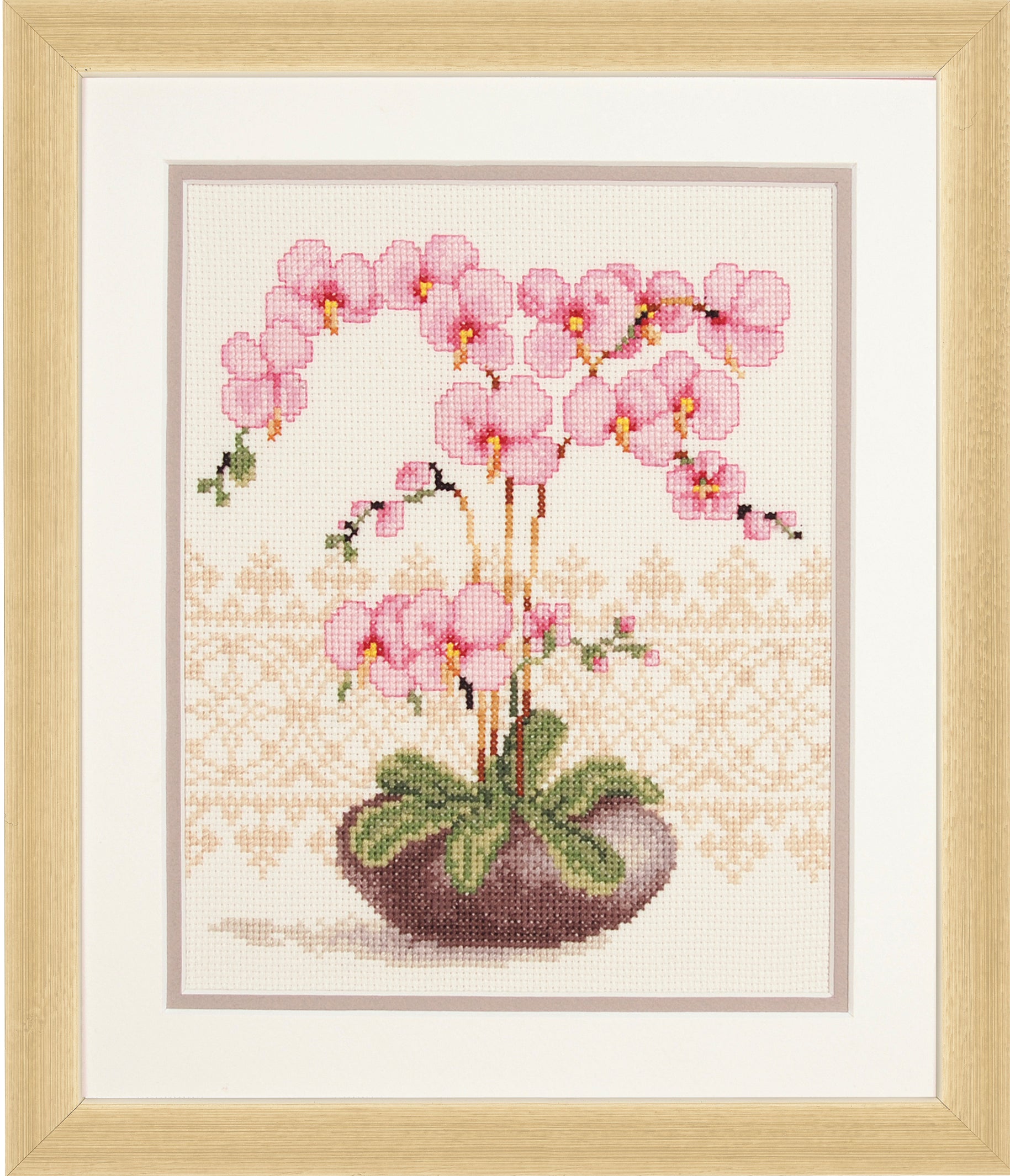 - Kit includes: 14 count aida fabric ecru, cotton, aida fabric; cotton and polyester pre-sorted, stranded cotton threads; needle; large-square charted design; front sheet picture and instructions in 8 languages (EN, NL, FR, GER, IT, SP, RU, SW).