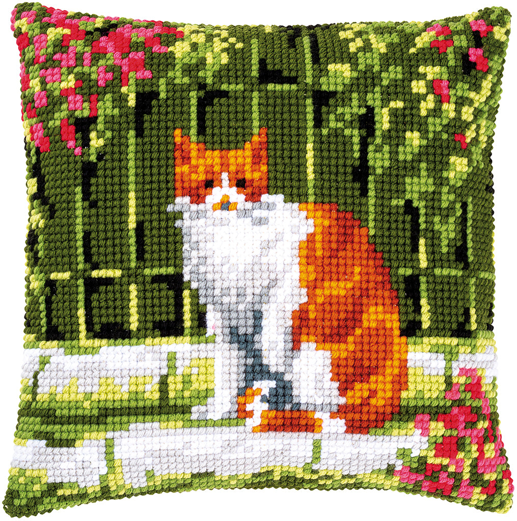 Vervaco ~ Counted Cross Stitch Cushion Front Kit ~ Cat Between Flowers II