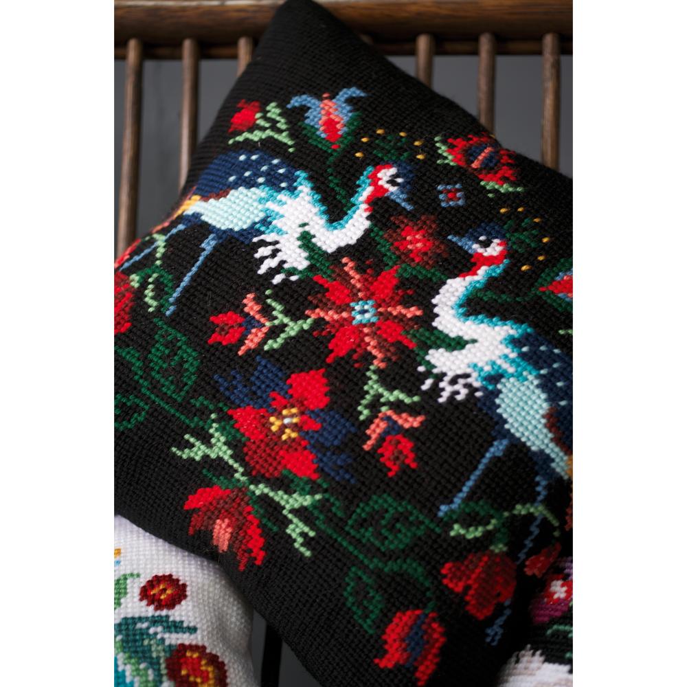- Kit includes: printed, large hole, cotton canvas, 26 holes/10cm, 6.5 stitches/inch; thick acrylic yarn; needle; front sheet picture; instructions in 8 languages (EN, NL, FR, GER, IT, SP, RU, SW).
