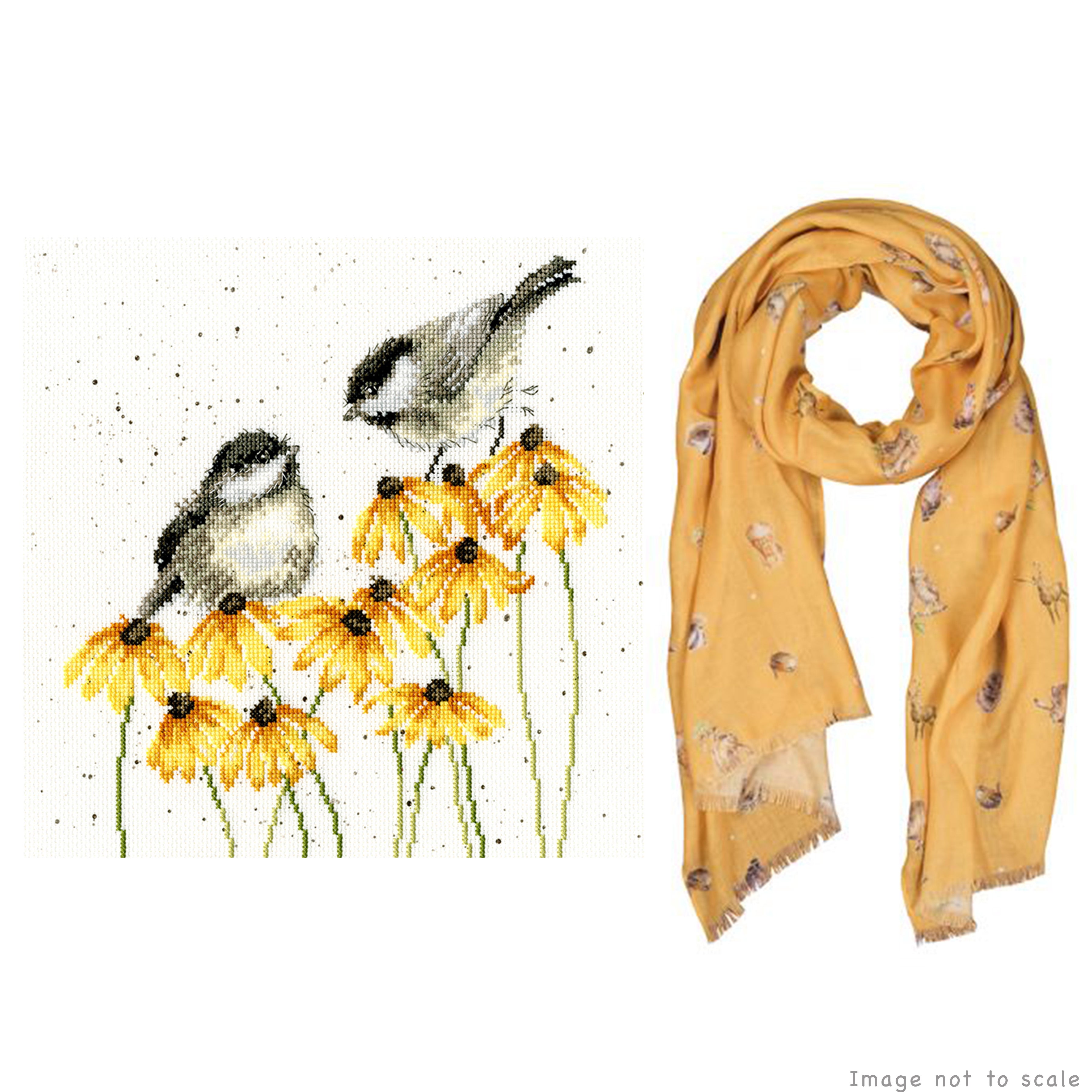 Chitter Chatter Gift Set - Cross Stitch Kit, and Mustard Woodland Scarf