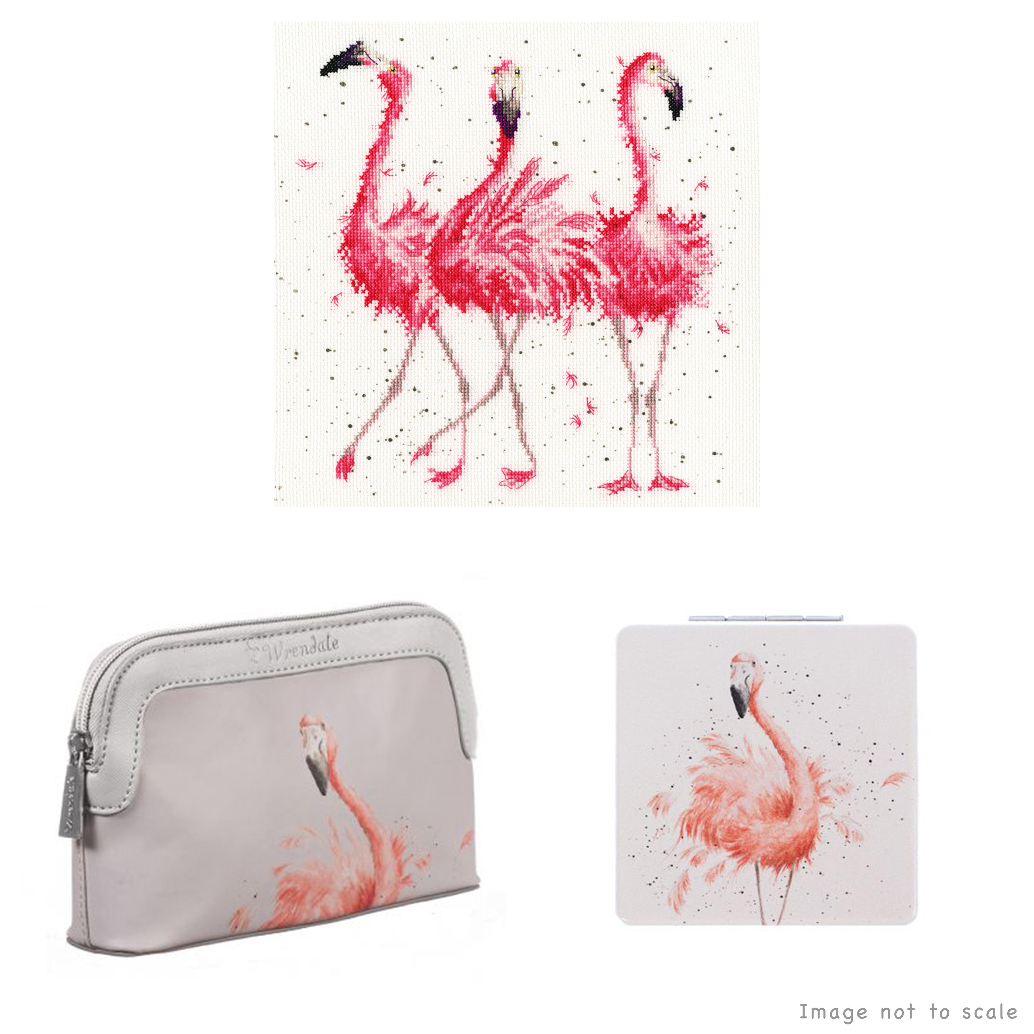 Pink Ladies Gift Set - Cross Stitch Kit, Small Cosmetic Bag & Compact Mirror