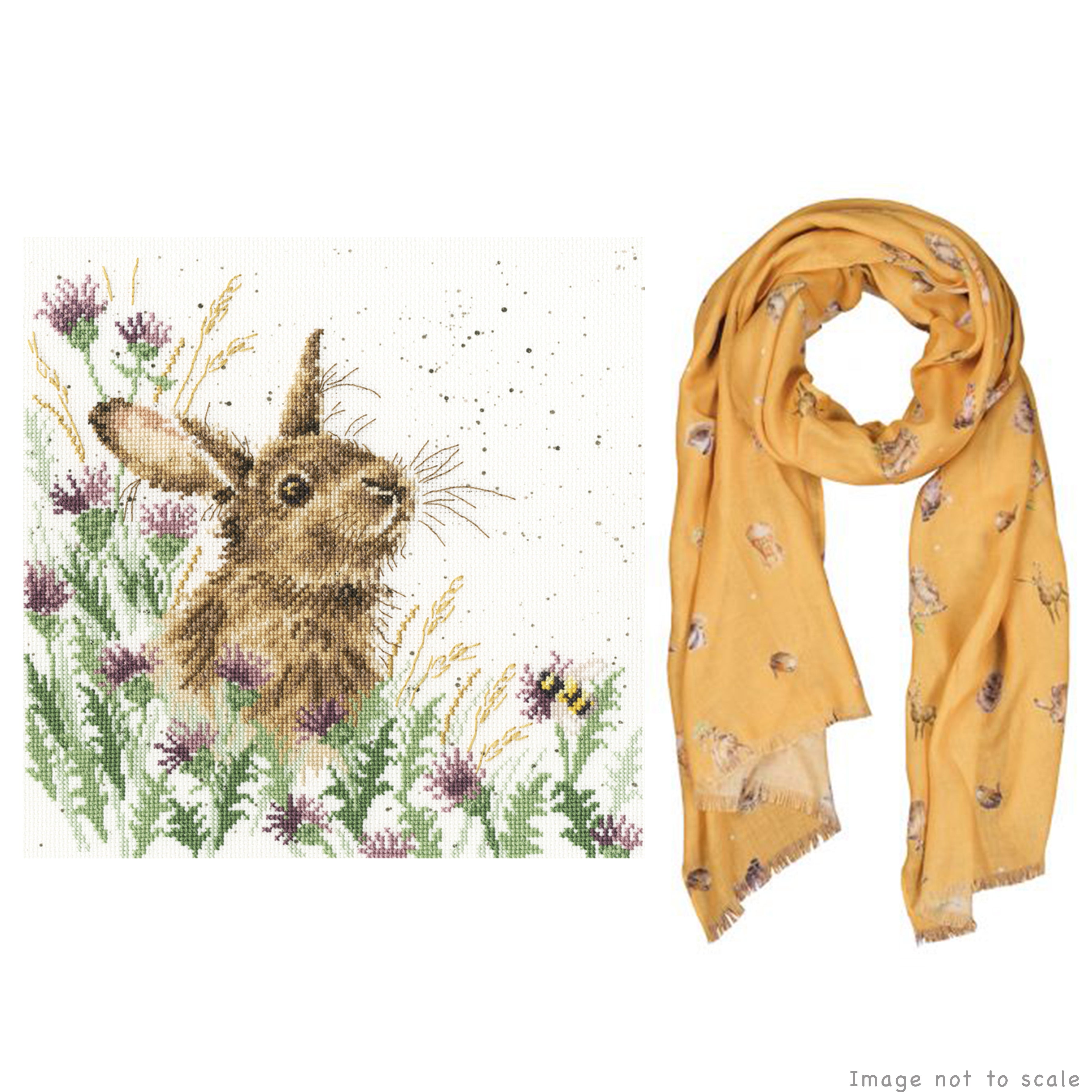 The Meadow Gift Set - Cross Stitch Kit, and Mustard Woodlands Scarf