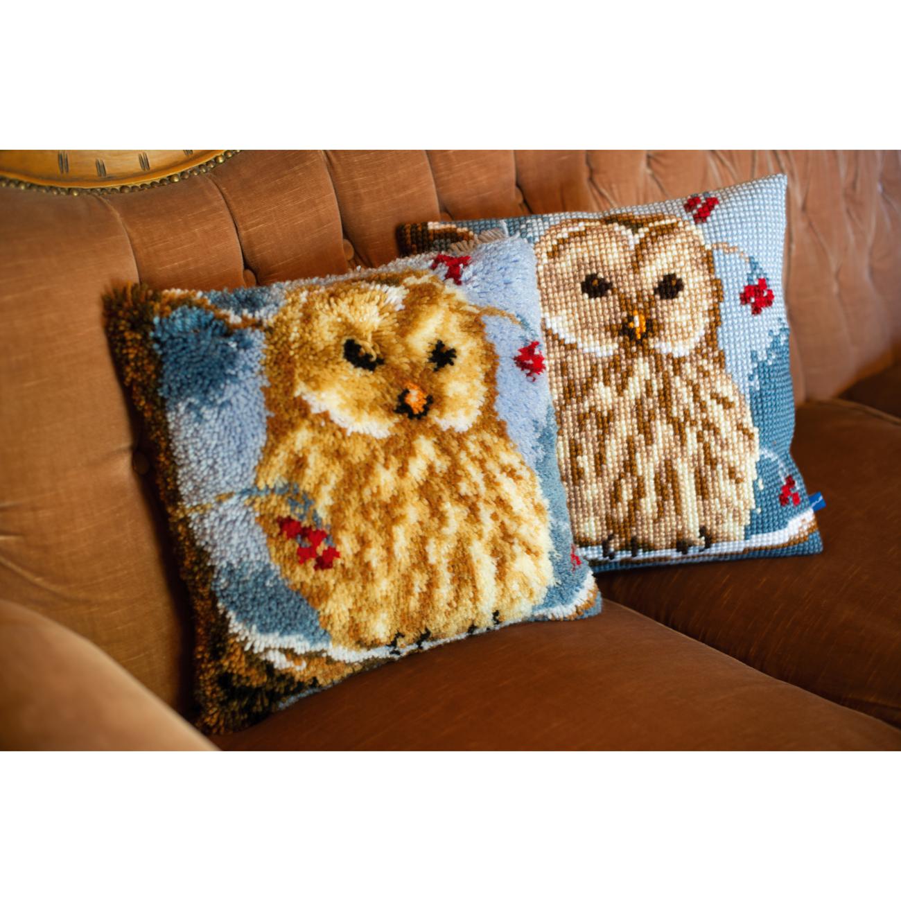 - Kit includes: hand painted, 52% cotton/48% polyester, large hole (18 holes/10cm, 4.5 stitches /inch) canvas; cut packs of acrylic yarn; latch hook; front sheet picture and instructions in 8 languages (EN, NL, FR, GER, IT, SP, RU, SW).