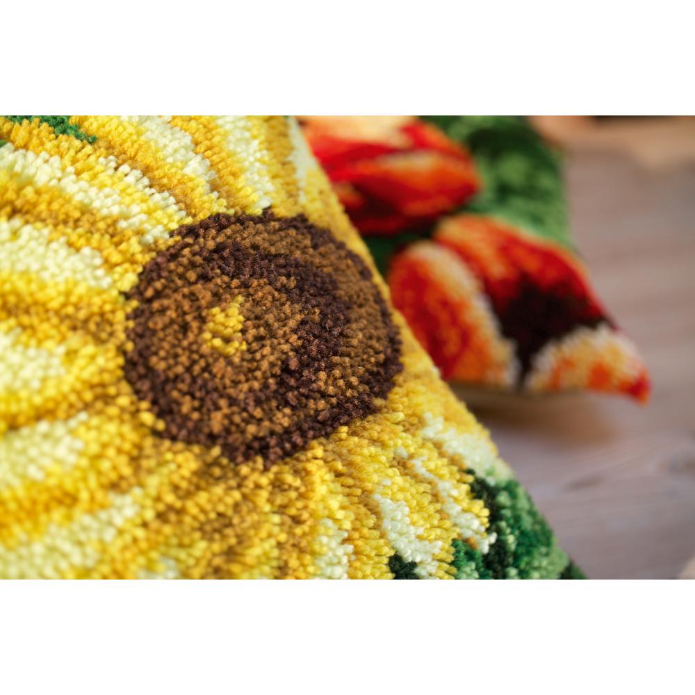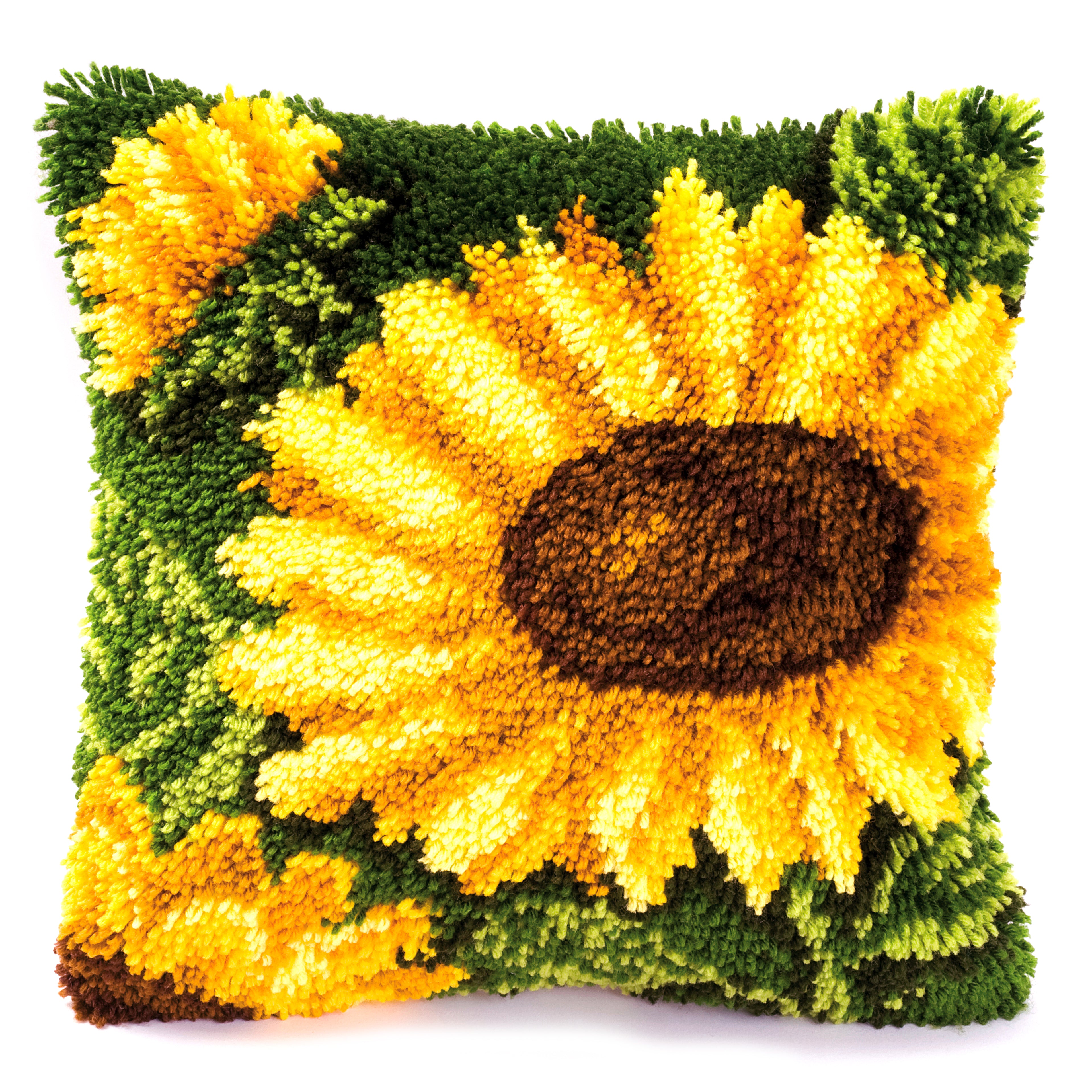 - Kit includes: hand painted, 52% cotton/48% polyester, large hole (18 holes/10cm, 4.5 stitches /inch) canvas; cut packs of acrylic yarn; latch hook; front sheet picture and instructions in 8 languages (EN, NL, FR, GER, IT, SP, RU, SW).