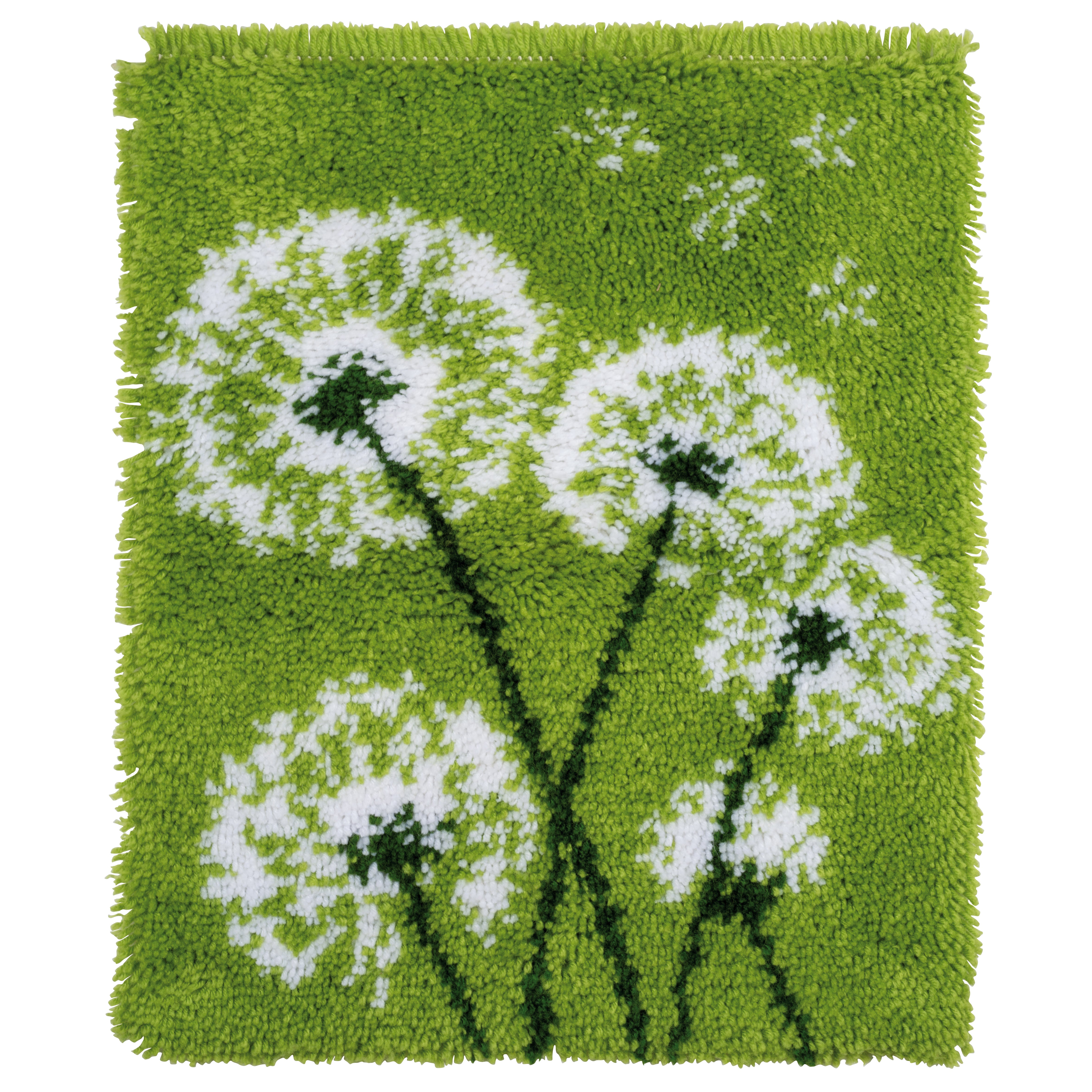 - Design created using cut packs of acrylic yarn, secured into hand-painted large hole, 52% cotton, 48% polyester, mono canvas. Kit includes instructions, latch hook, yarn for suspension loops and binding tape for finishing.