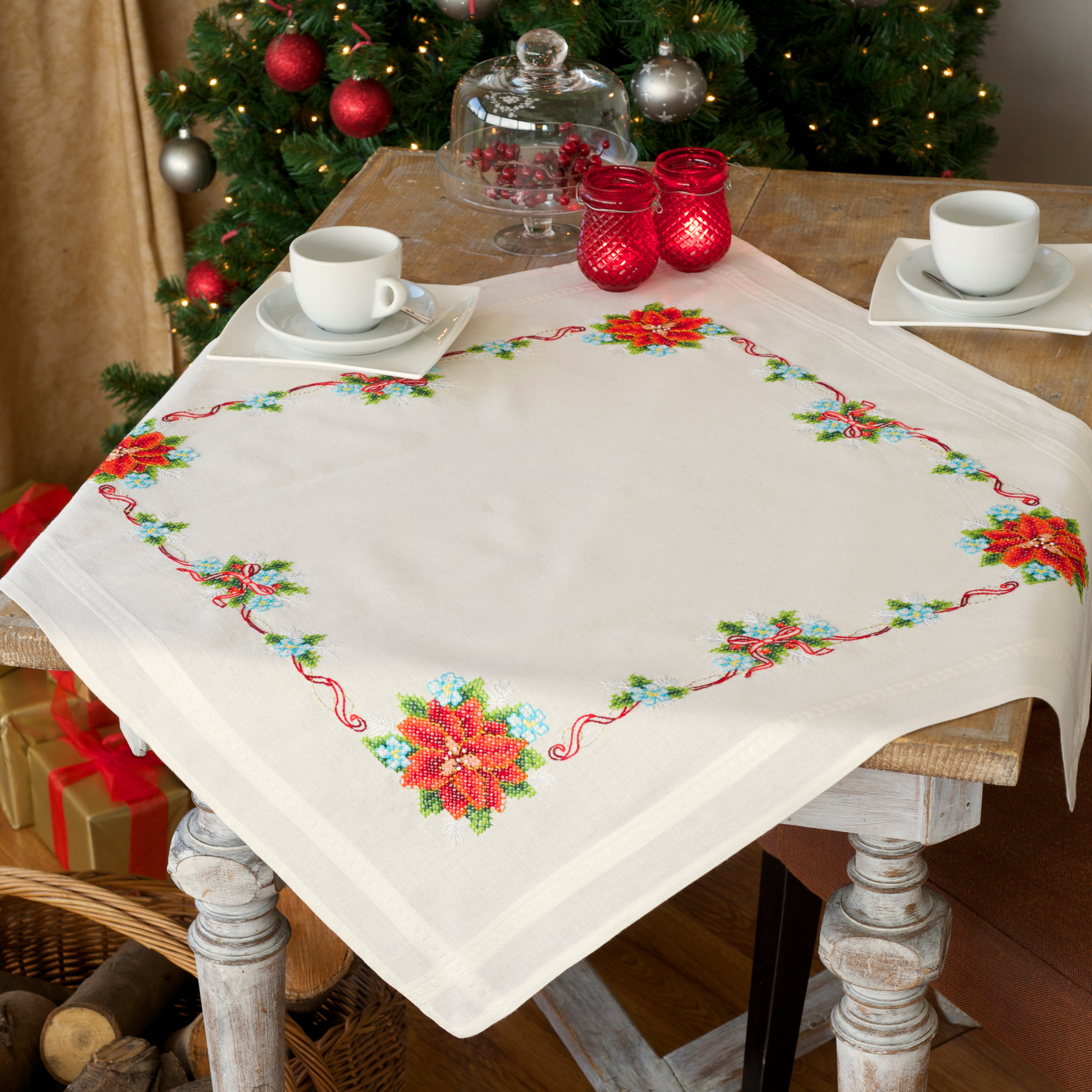 Tablecloth Embroidery Kit ~ Poinsettia & Ribbon