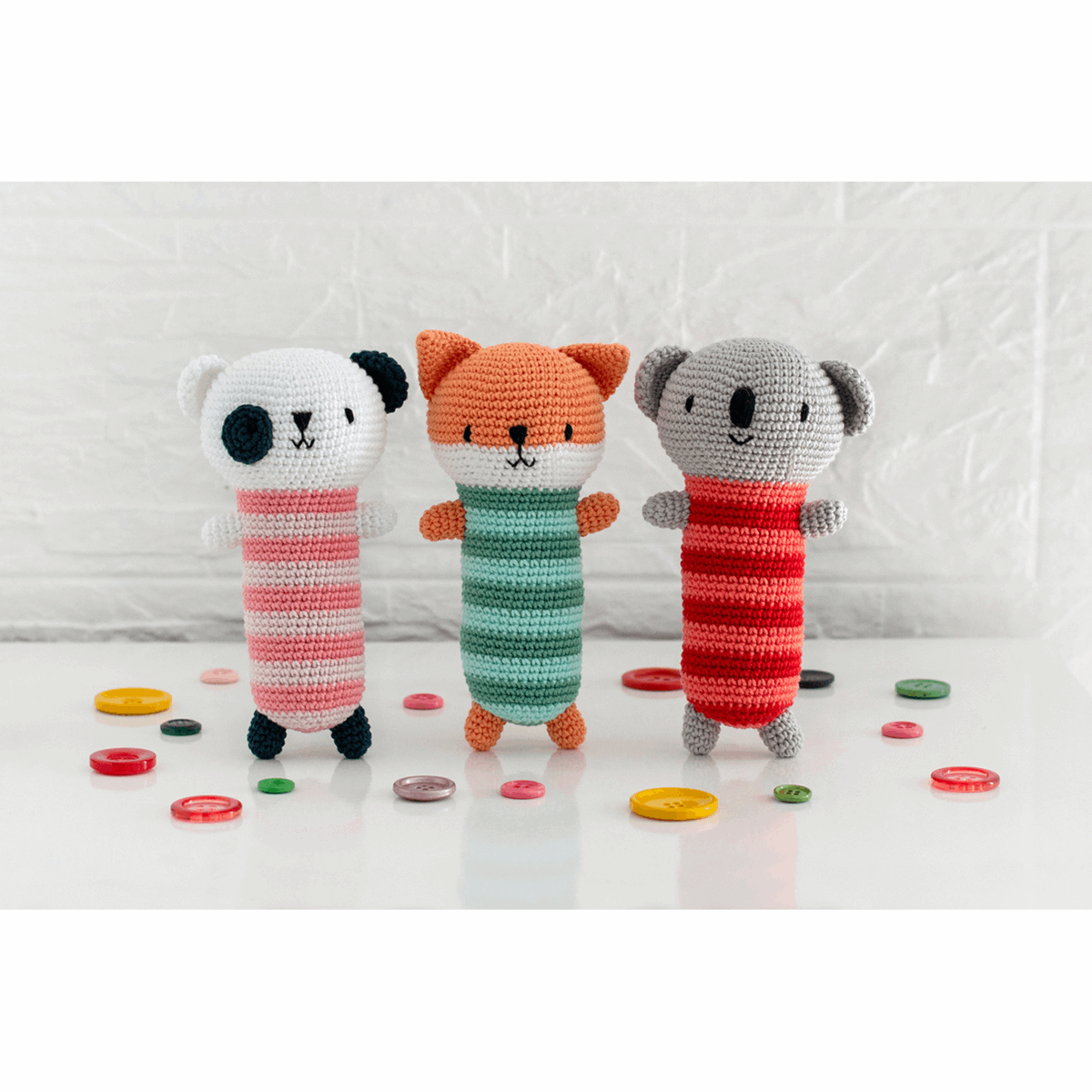 Set of 3 crocheted amigurumis figures - koala, fox and panda.