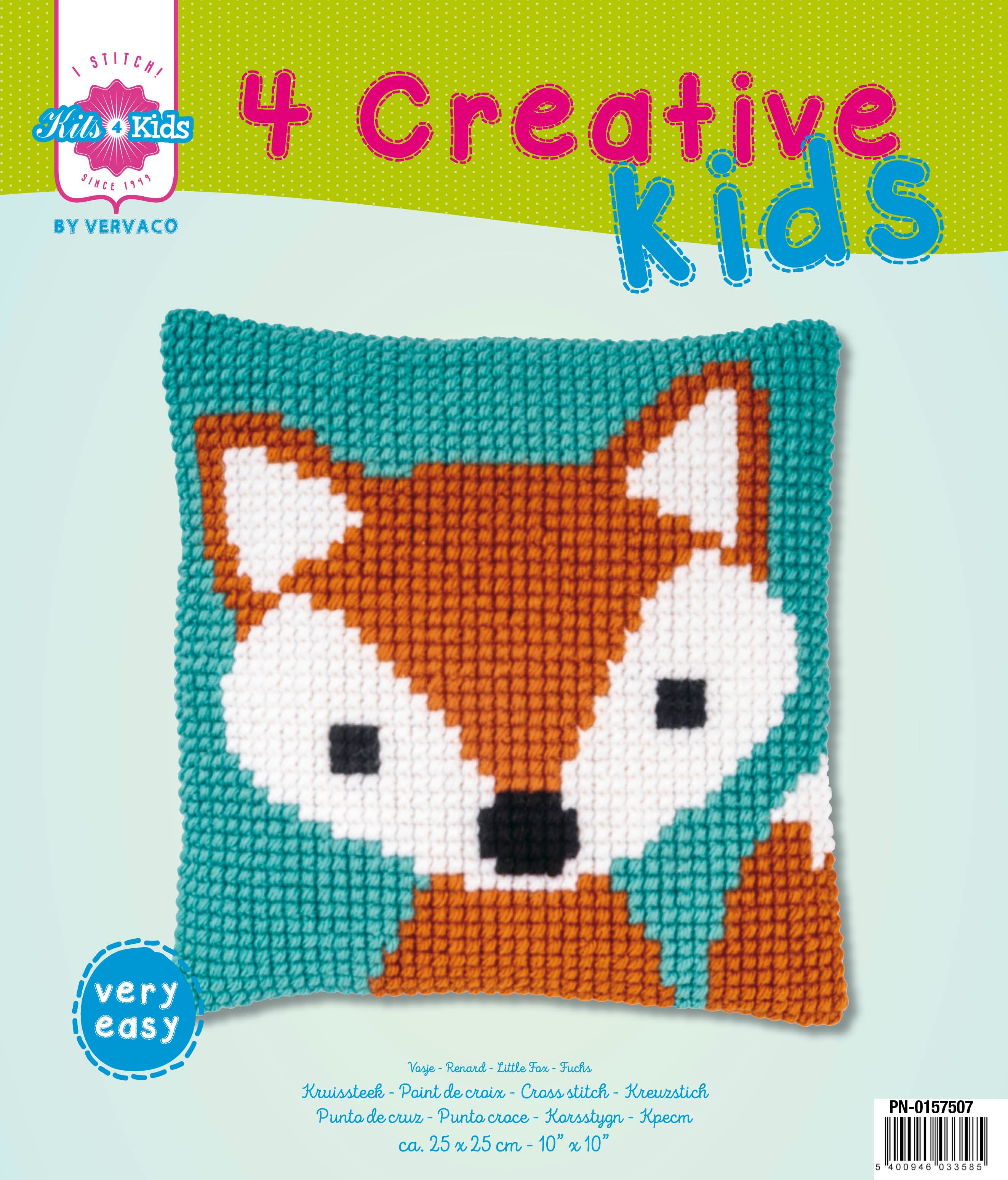 • Kit includes: hand painted, large hole, cotton canvas; thick acrylic yarn; needle; 'I Stitch by Vervaco DIY-label; front sheet picture and instructions in eight languages (EN, NL, FR, GER, IT, SP, RU, SW).
