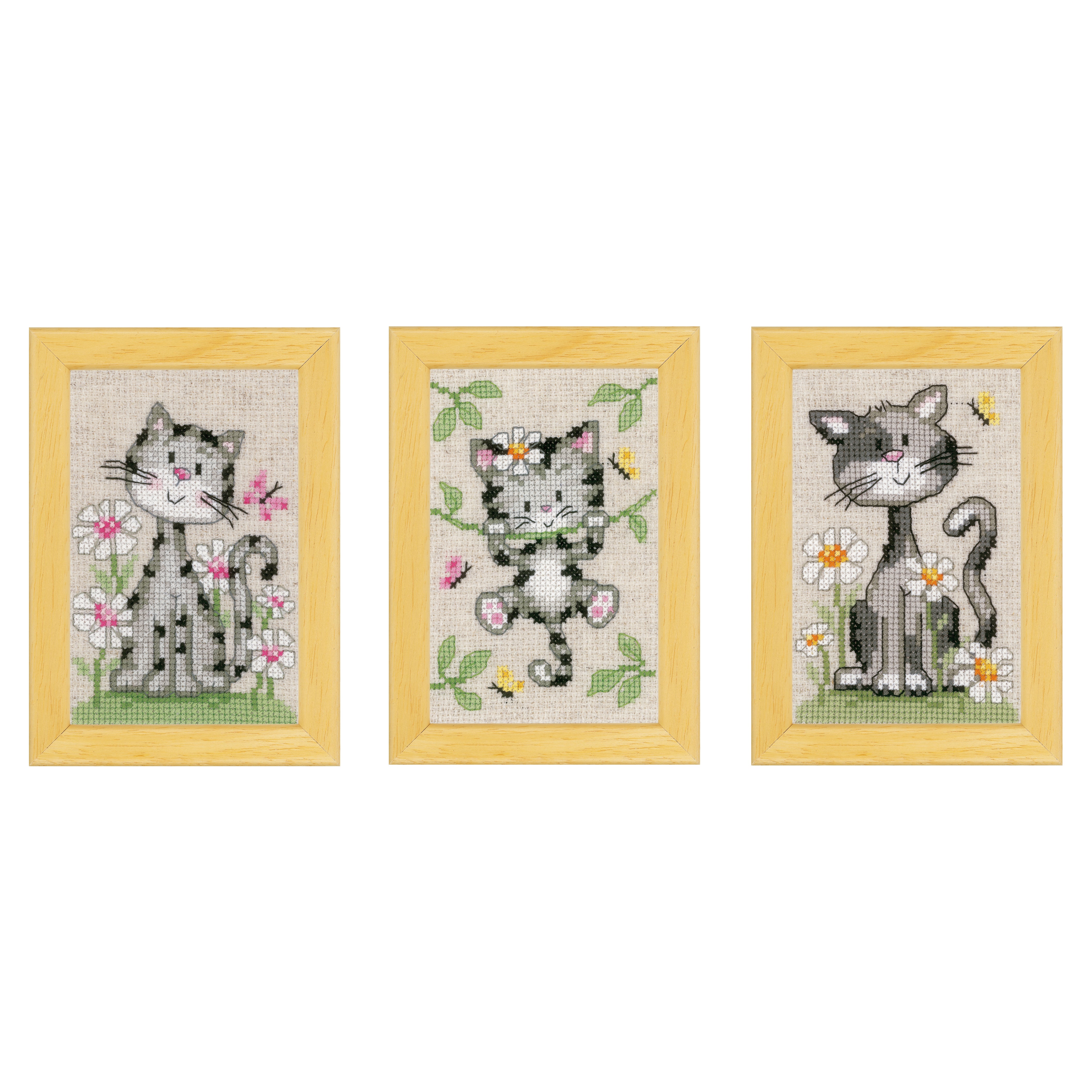 Counted Cross Stitch Kit ~ Cats & Flowers Set of 3