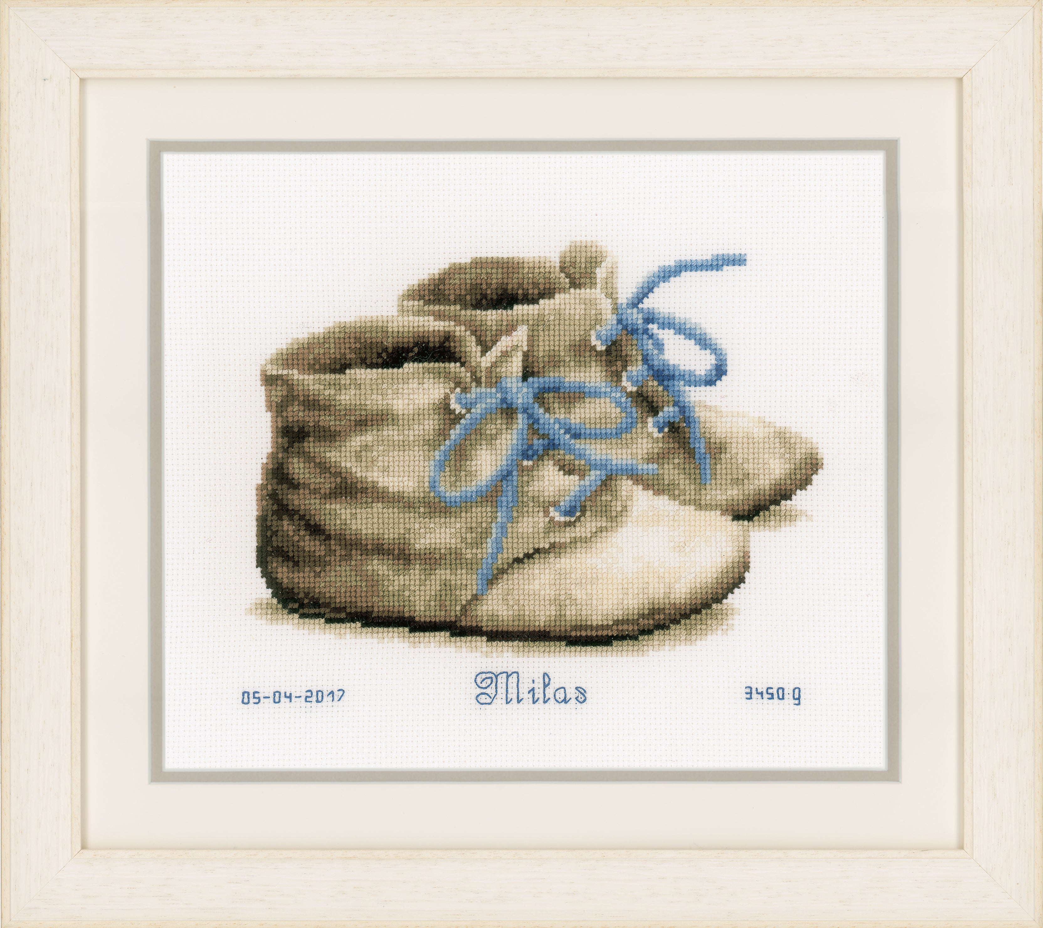 Birth Record Counted Cross Stitch Kit ~ Baby Shoes