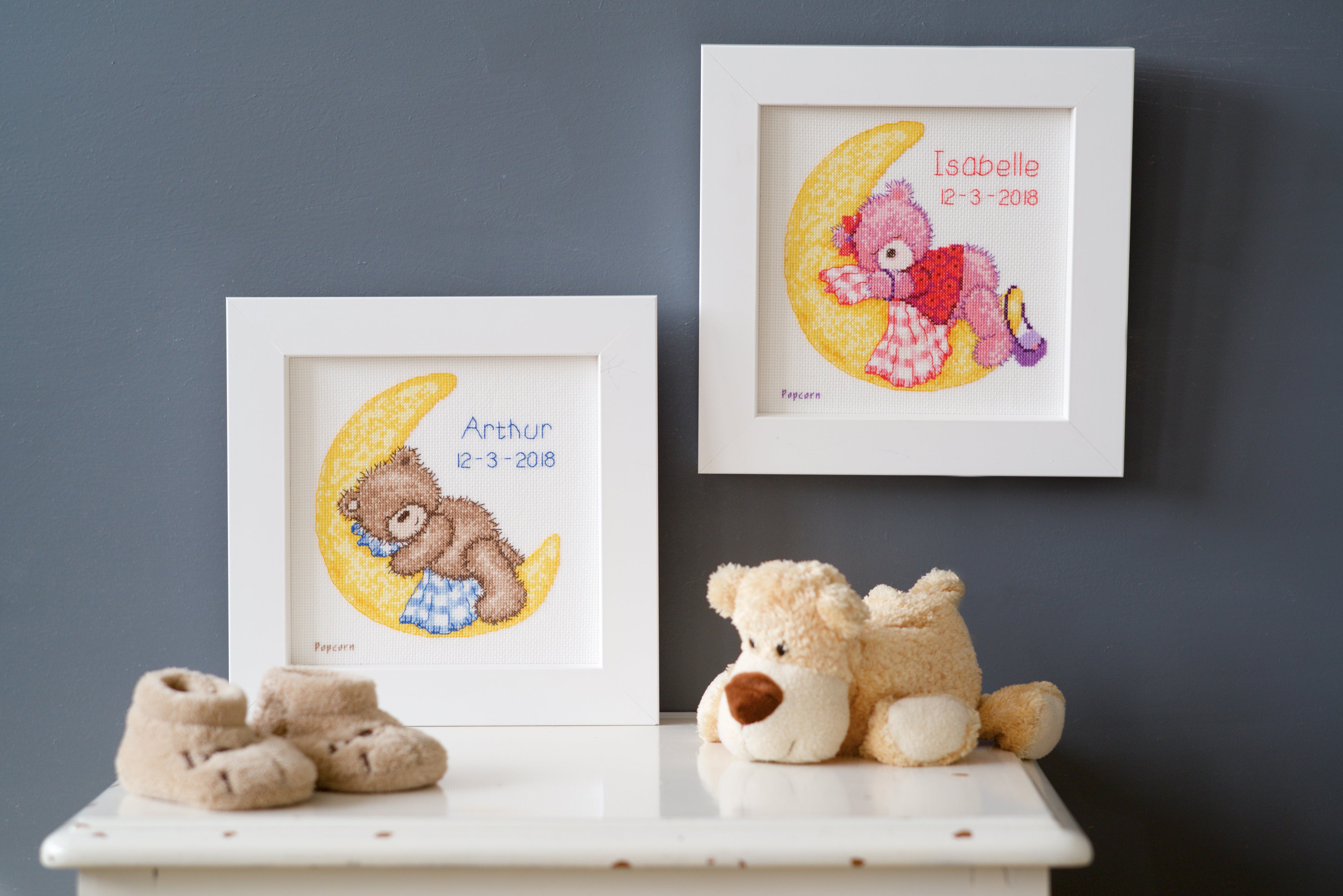 Birth Record Counted Cross Stitch Kit ~ Brie Bear on the Moon