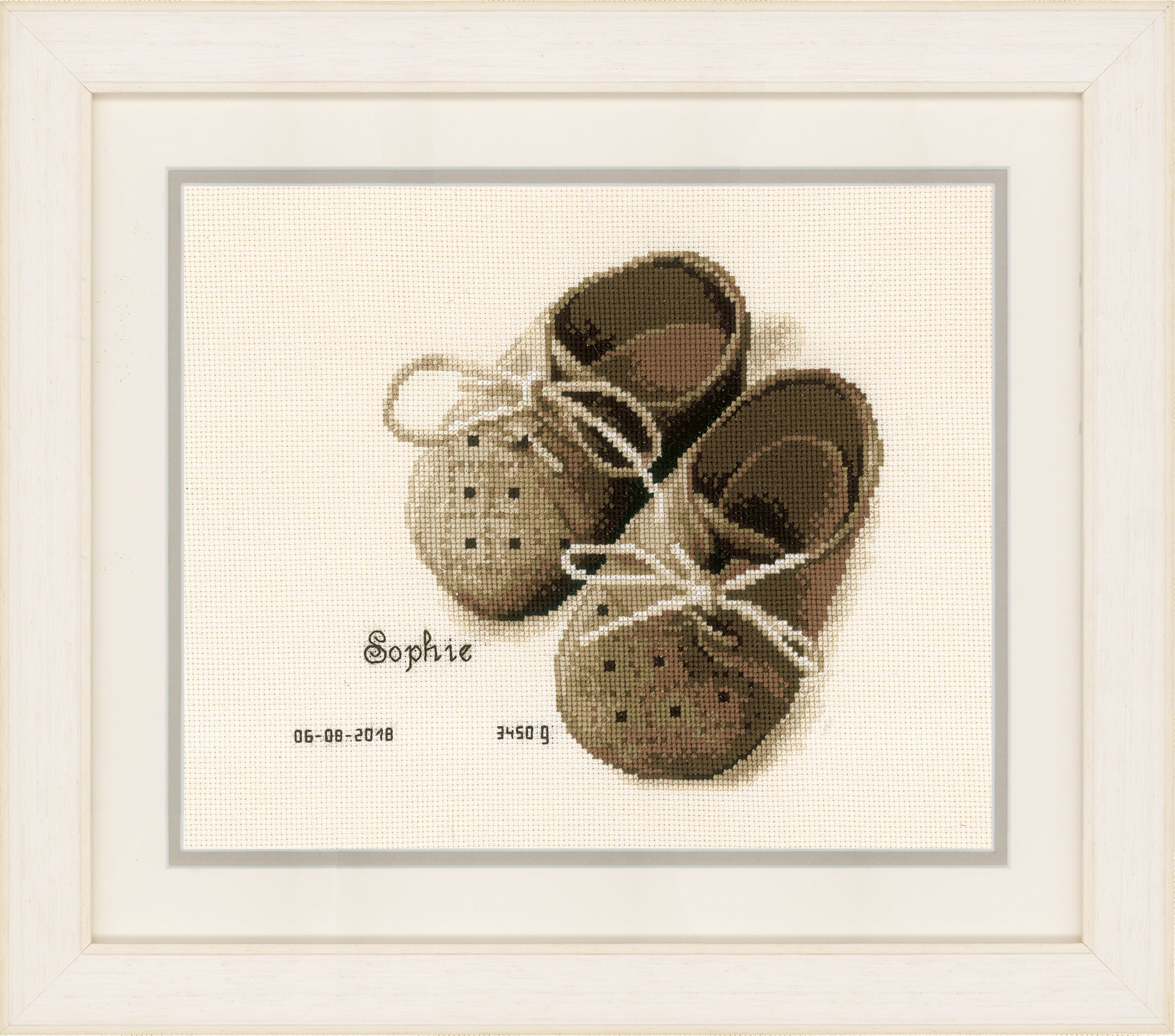 Birth Record Counted Cross Stitch Kit ~ First Shoes