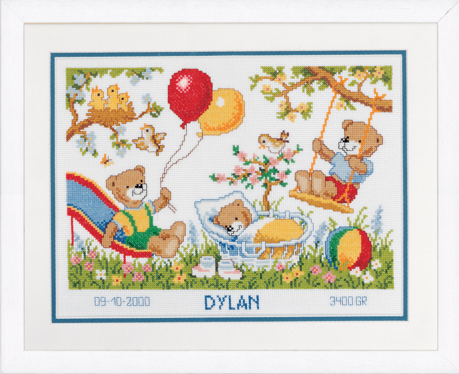 Birth Record ~ Counted Cross Stitch Kit ~ Teddies in Garden