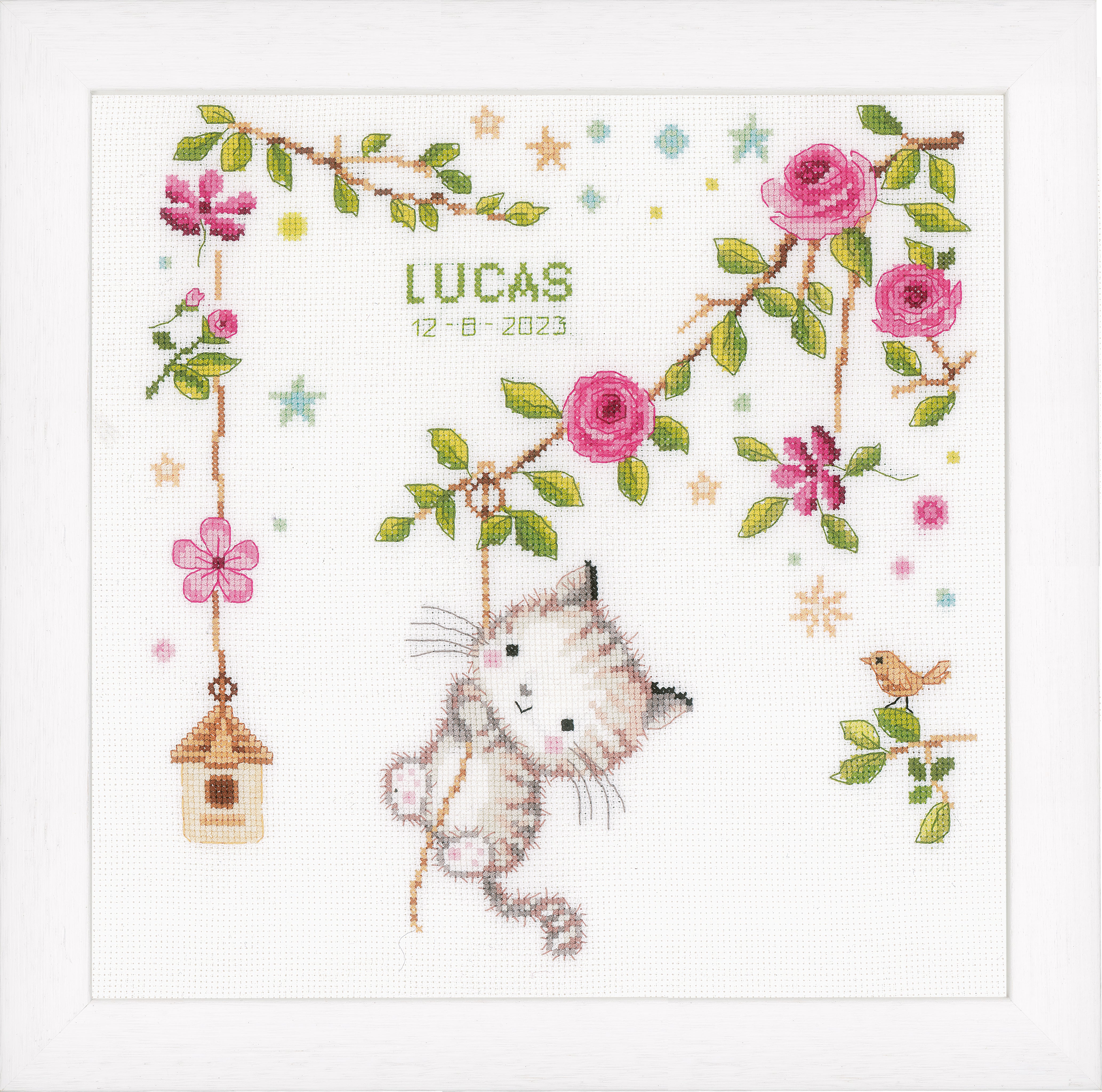 Vervaco ~ Counted Cross Stitch Kit ~ Birth Record ~ Cheeky Kitten