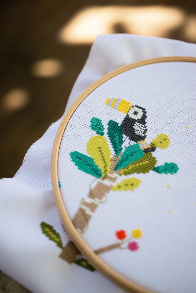 - Kit includes: 14 count, white, cotton, aida fabric; pre-sorted, stranded cotton threads; needle; large-square charted design; frontsheet picture with alphabet; instructions in 8 languages (EN, NL, FR, GER, IT, SP, RU, SW).