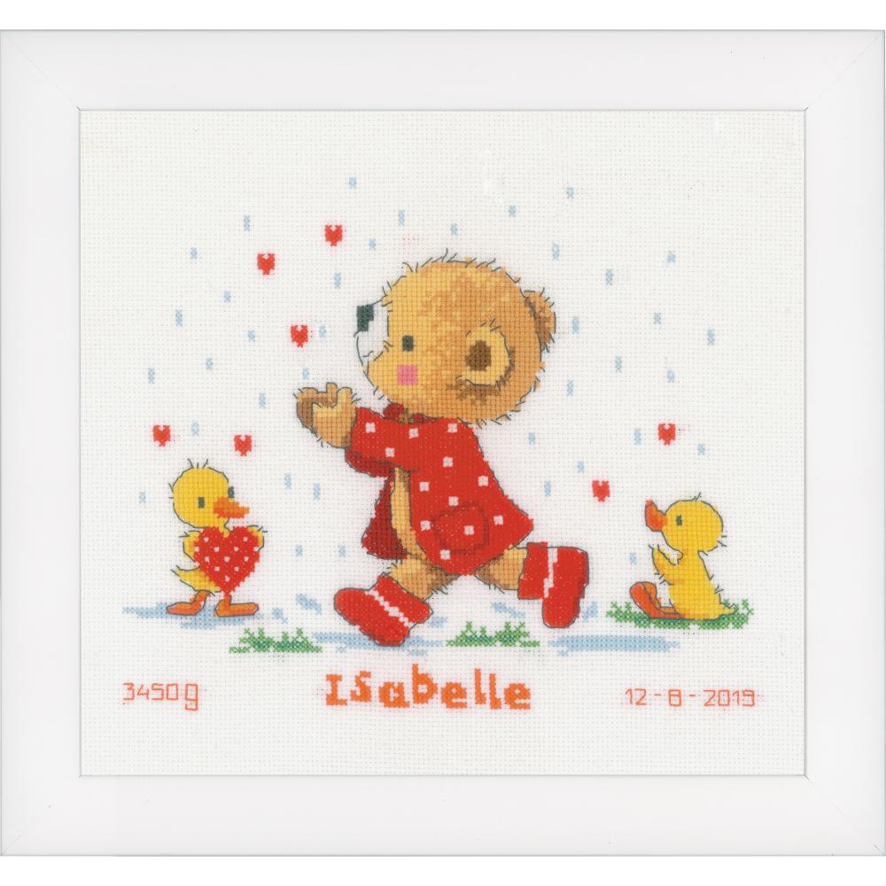 Birth Record Counted Cross Stitch Kit ~ Bear & Hearts