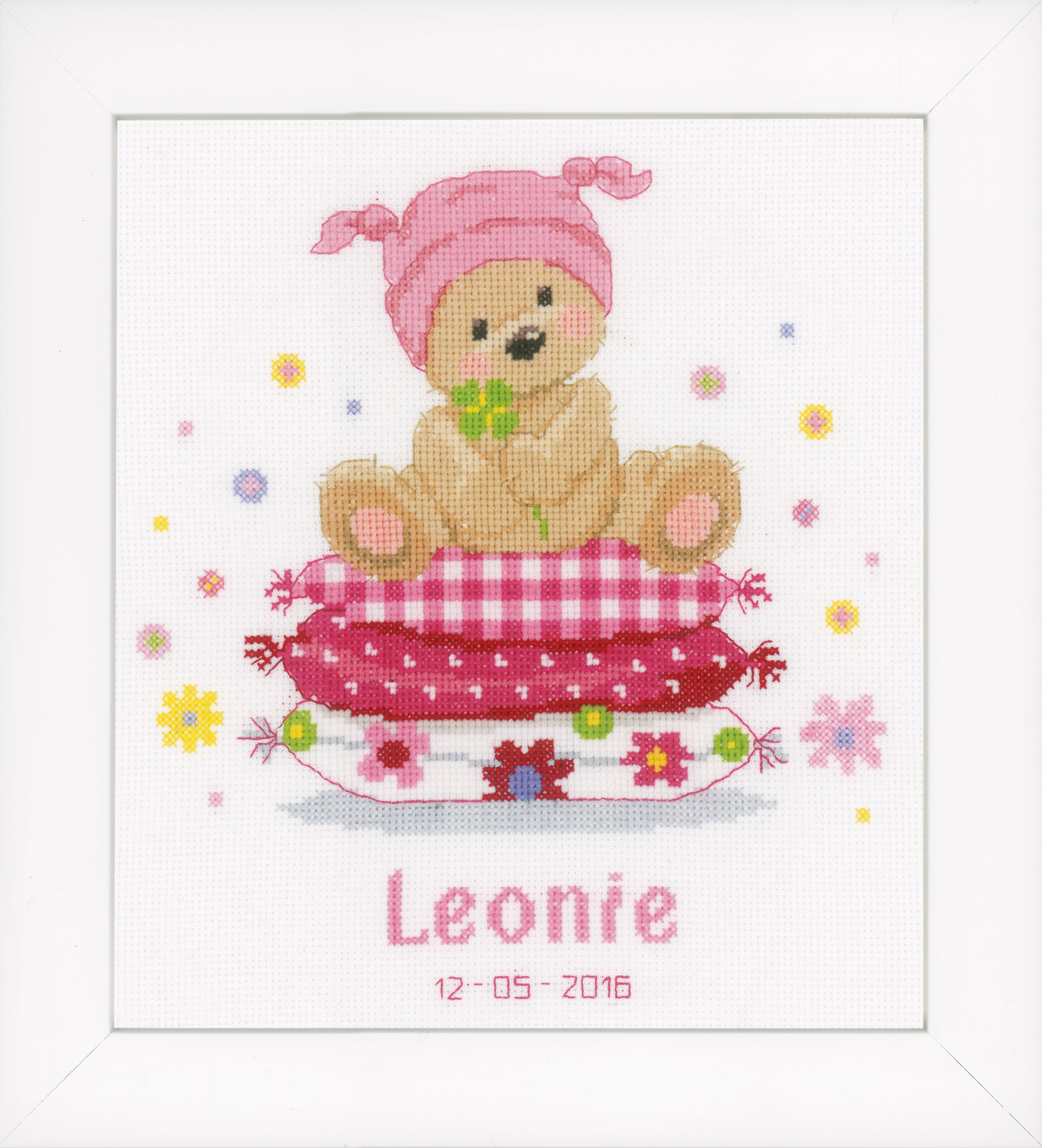 Counted Cross Stitch Kit ~ Birth Record Bear On Pillow