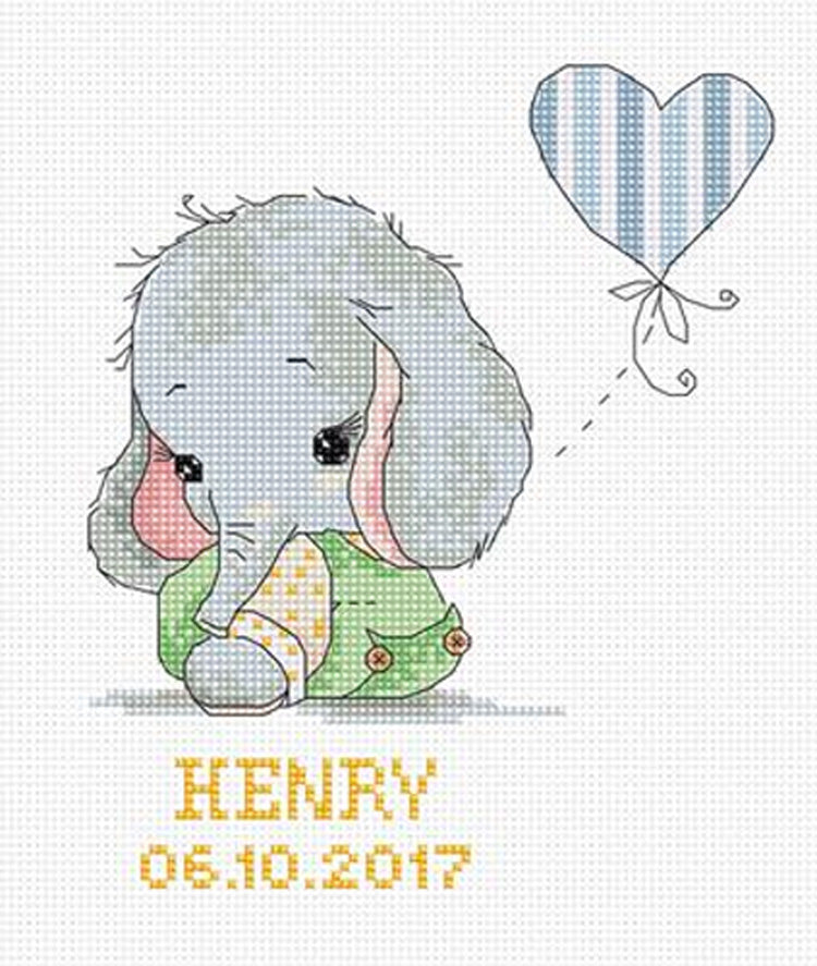 Luca-S ~ Counted Cross Stitch Kit ~ Birth Record ~ New Baby Elephant