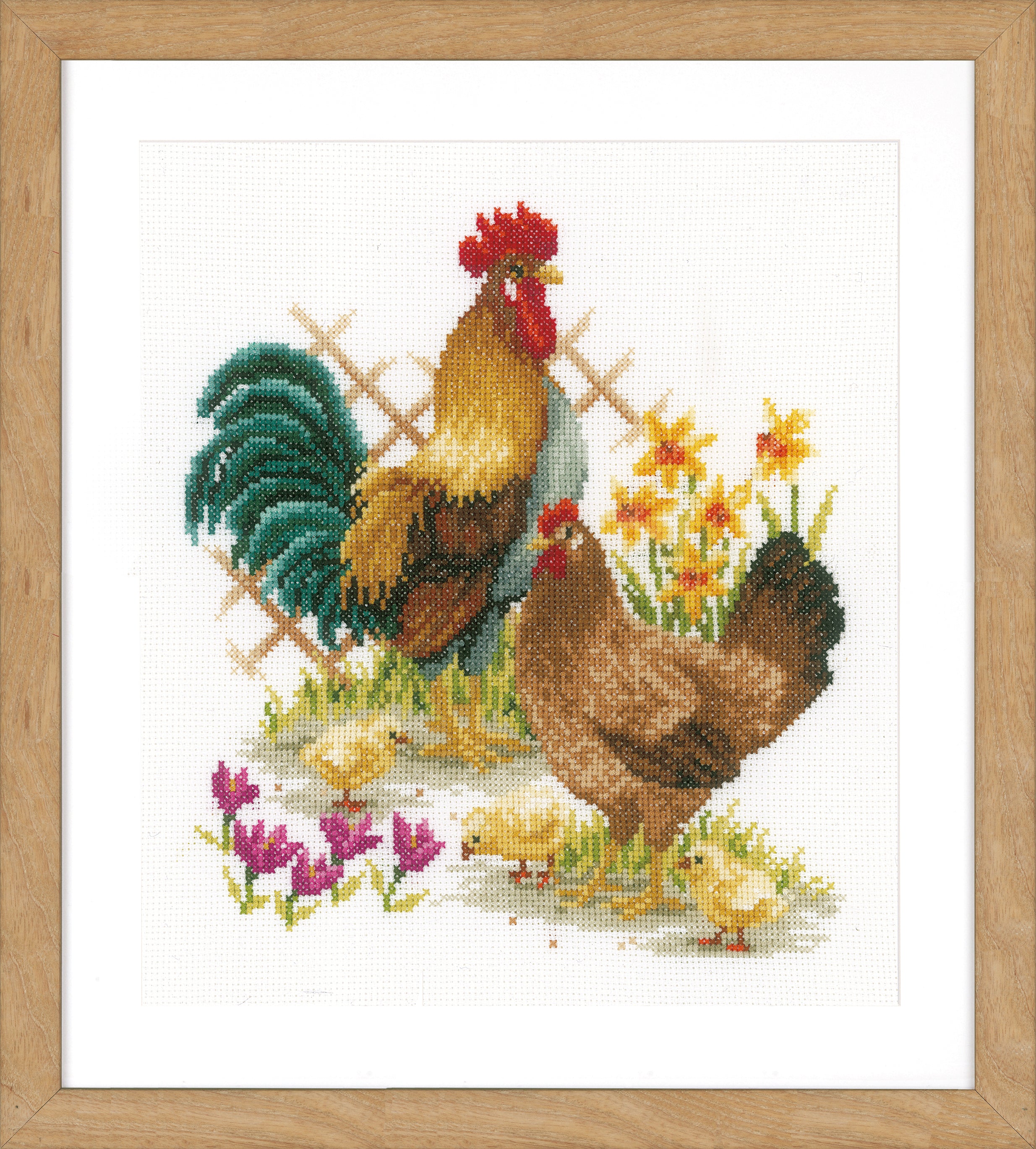 - Kit includes: 18 count, white, cotton, aida fabric; pre-sorted, stranded cotton threads; needle; large-square charted design; front sheet picture and instructions in 8 languages (EN, NL, FR, GER, IT, SP, RU, SW).
