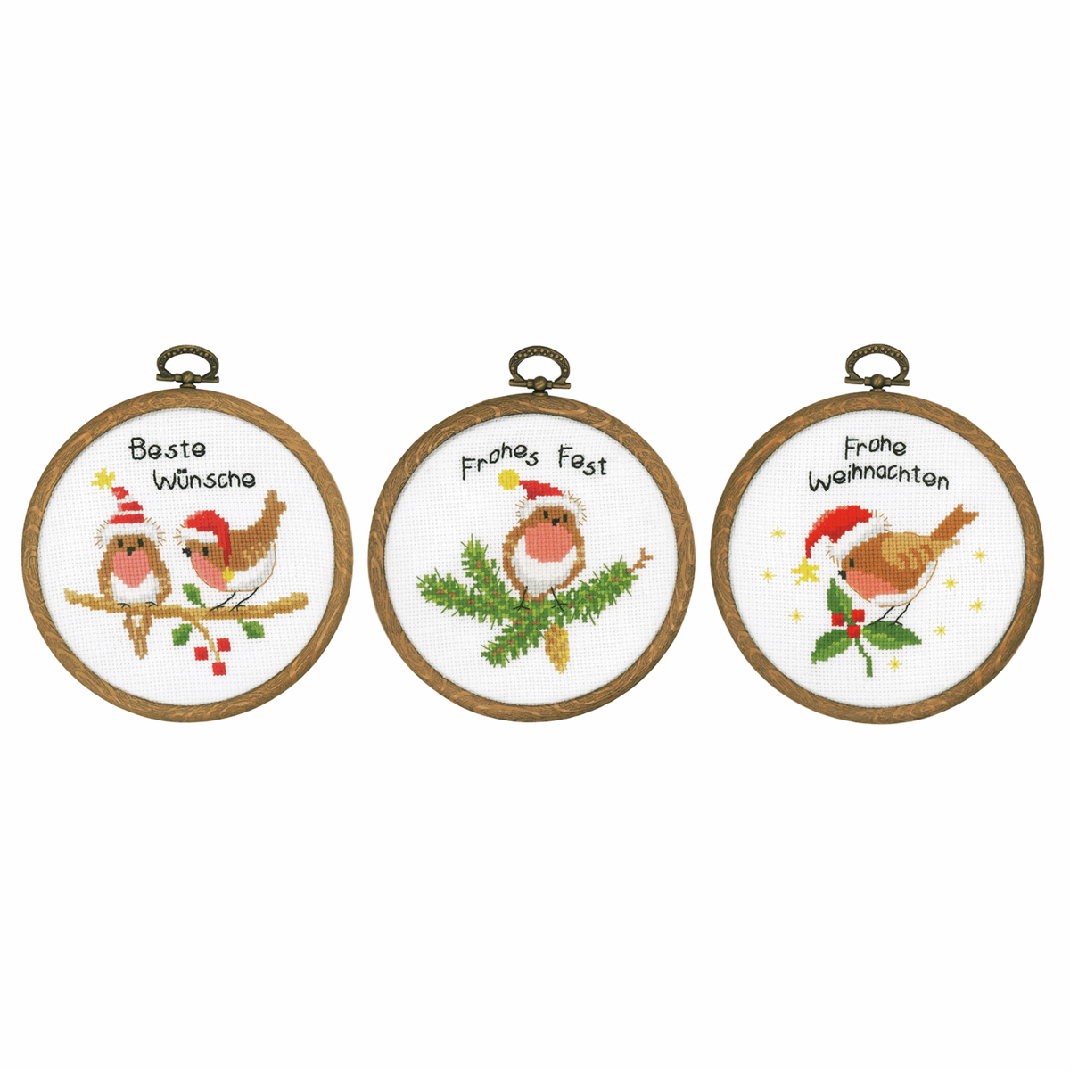 Vervaco ~ Counted Cross Stitch Kit ~ Christmas Birds Miniatures ~ Set of 3