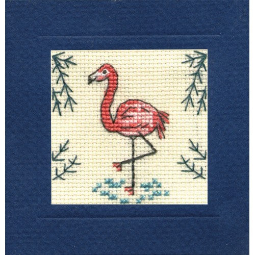 Textile Heritage ~ Counted Cross Stitch Kit ~ Mini Card ~ Flamingo