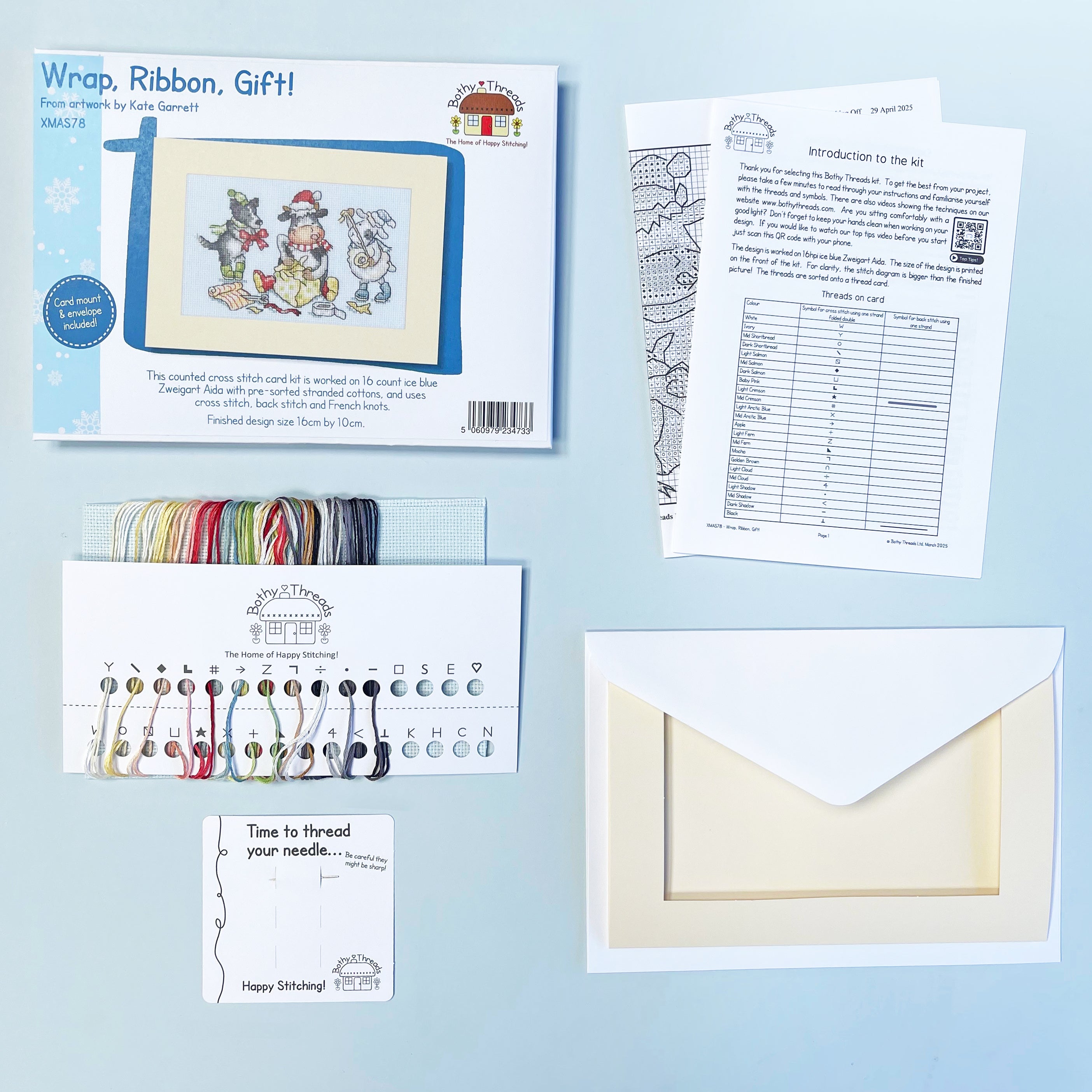 Wrap, Ribbon, Gift! Cross Stitch Card Kit