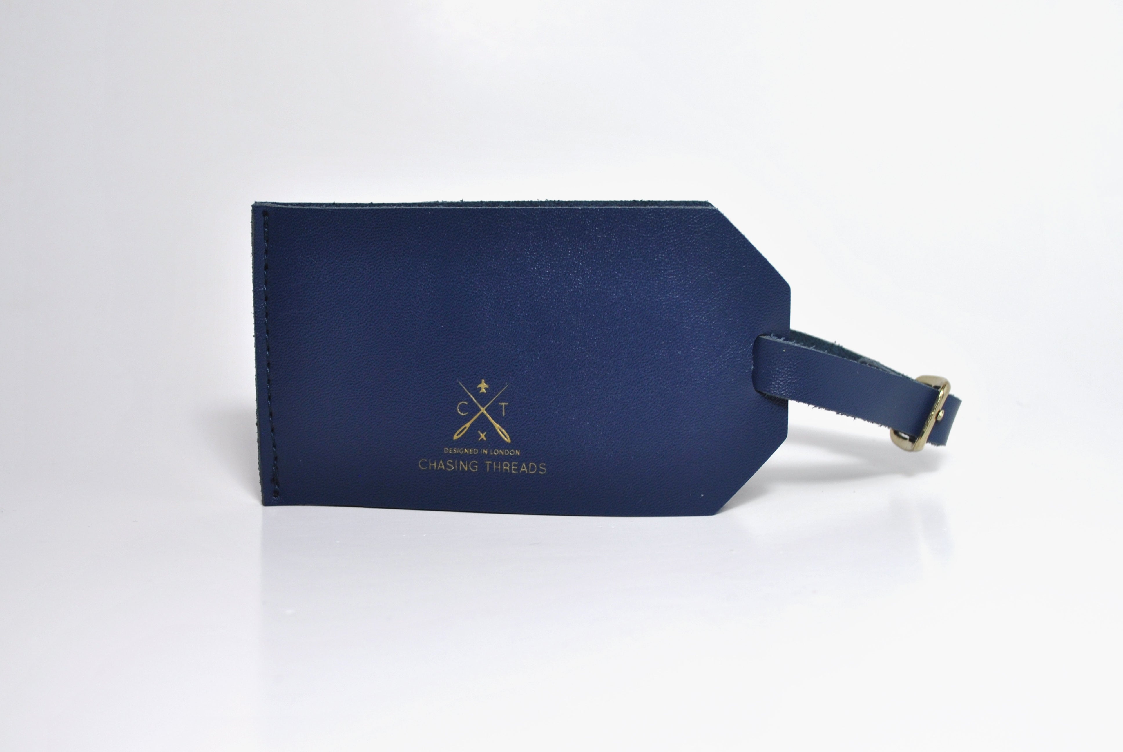 Stitch your own personalised luggage tag in deluxe navy leather!
