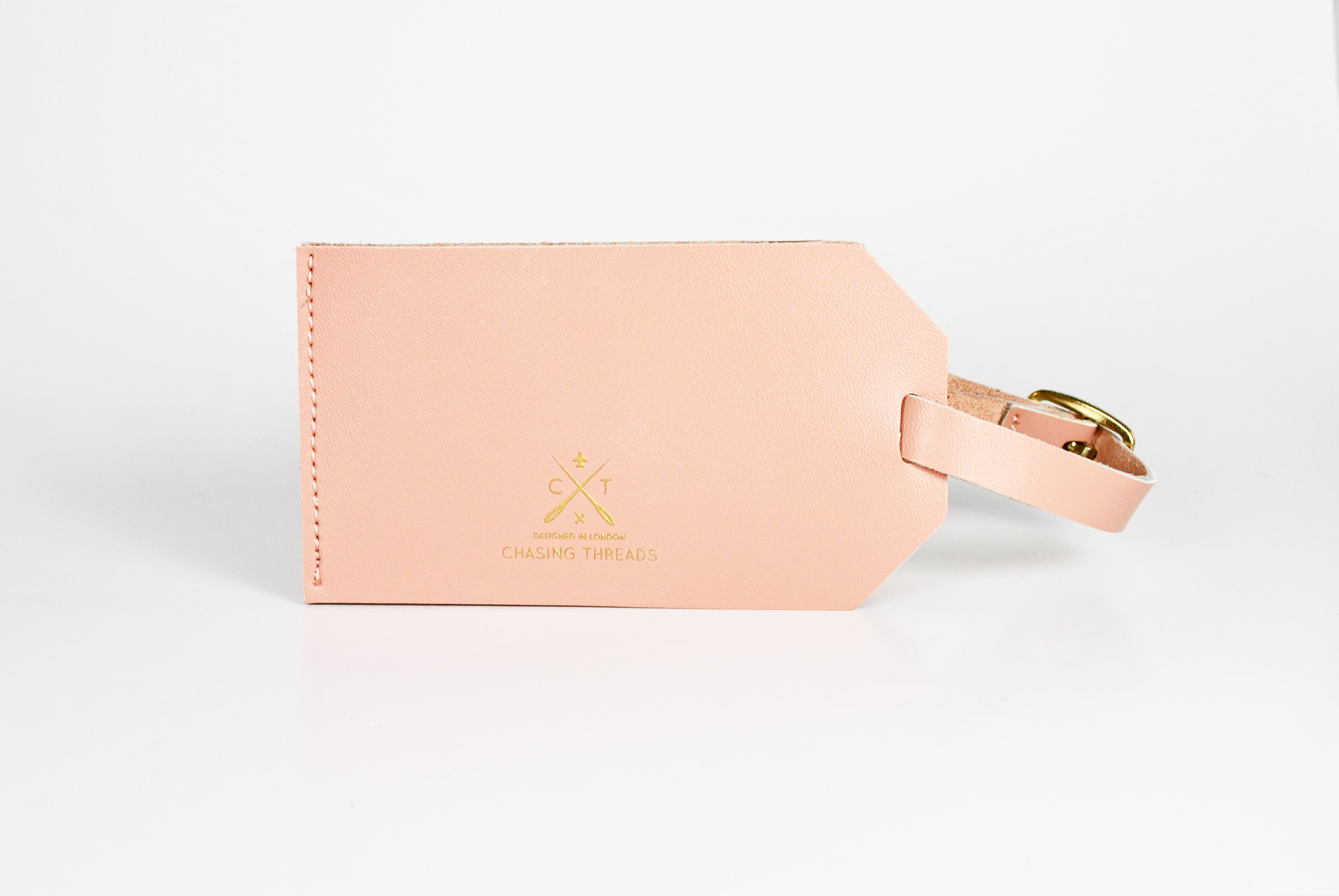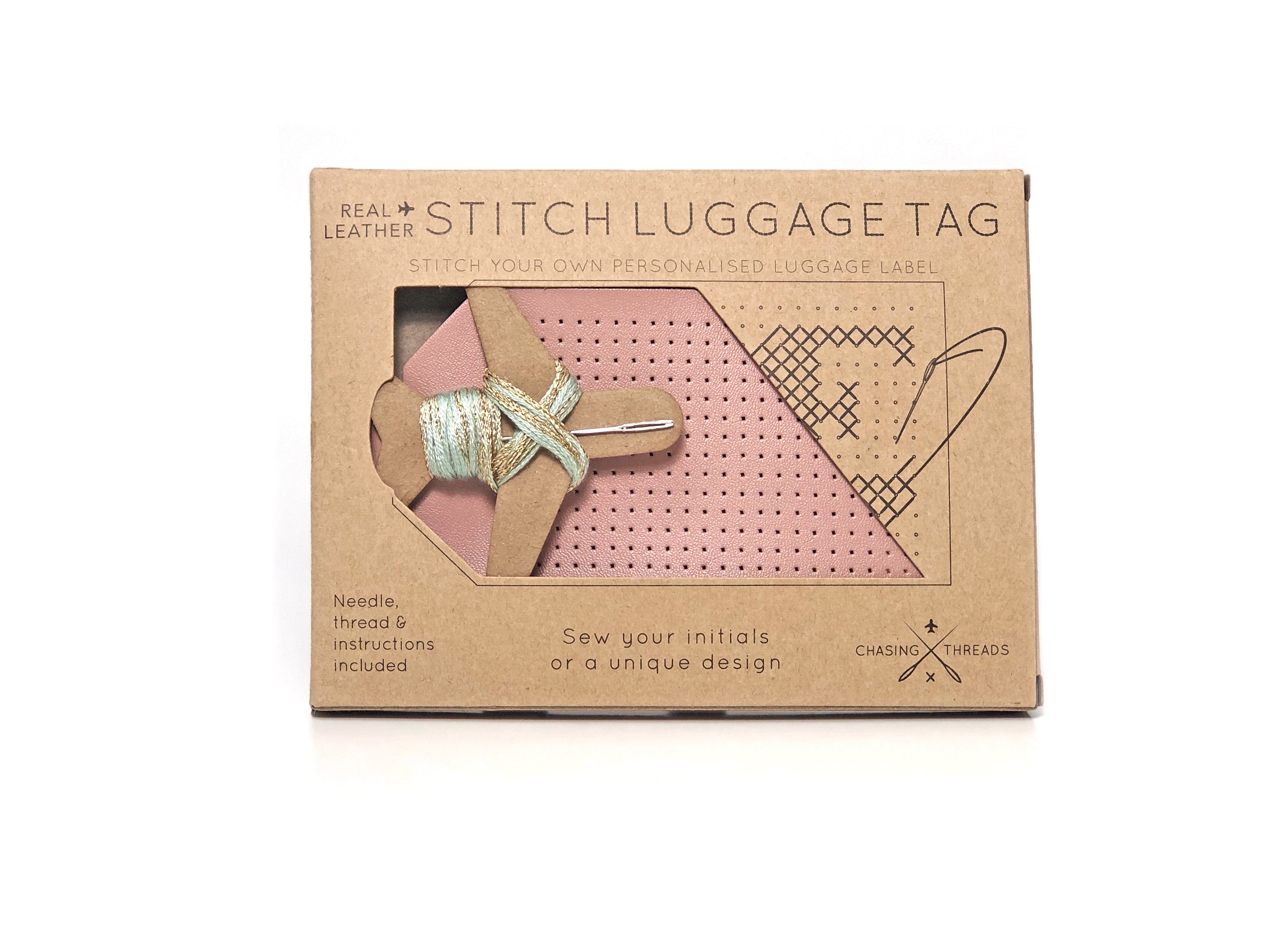 Stitch your own personalised luggage tag in beautiful pastel pink leather!