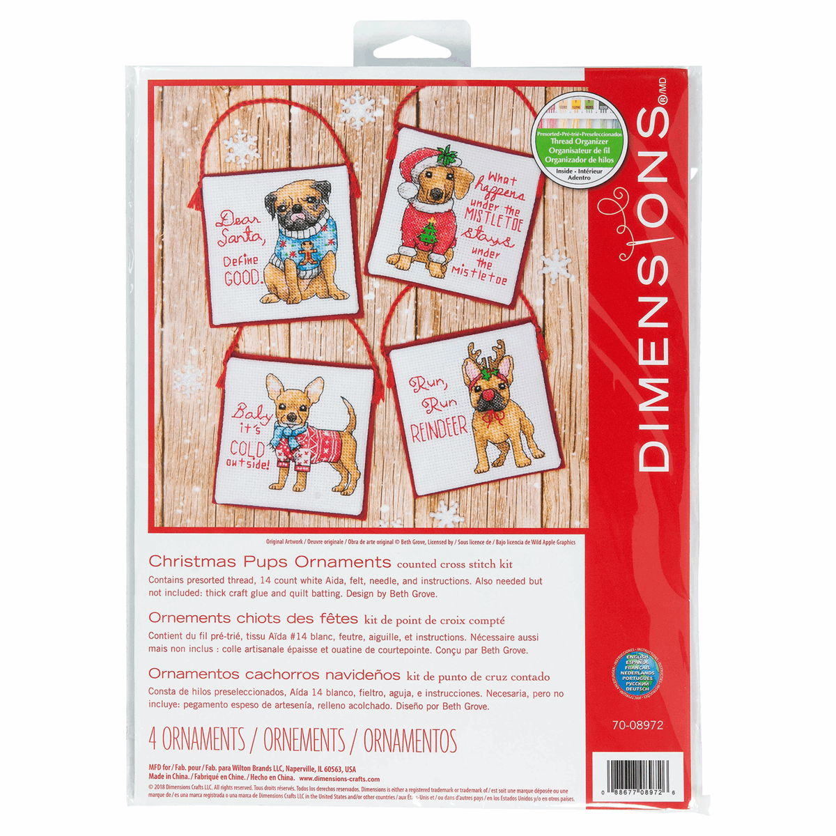 Dimensions ~ Counted Cross Stitch Kit ~ Christmas Pups Ornament Set