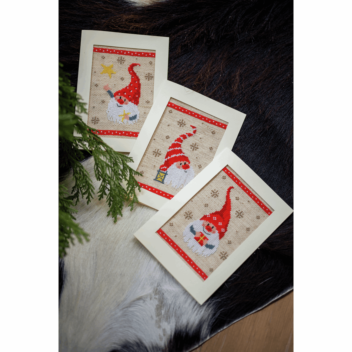 Vervaco ~ Counted Cross Stitch Kit ~ Christmas Card ~ Gnomes ~ Set of 3