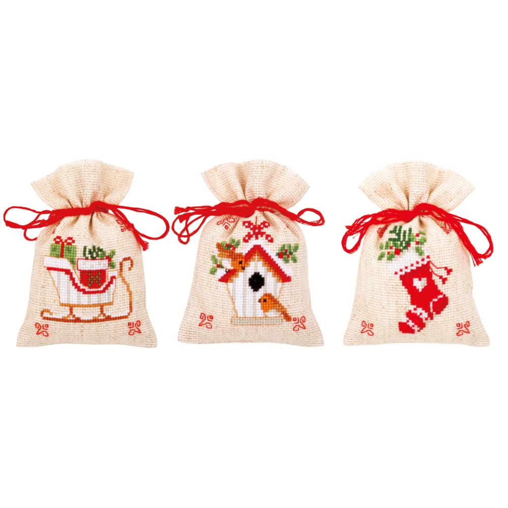 Gift Bags Counted Cross Stitch Kit ~ Christmas Motif Set of 3