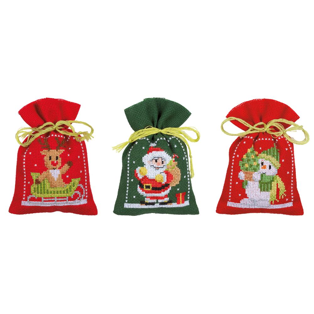 Gift Bags Counted Cross Stitch Kit ~ Christmas Figures Set of 3