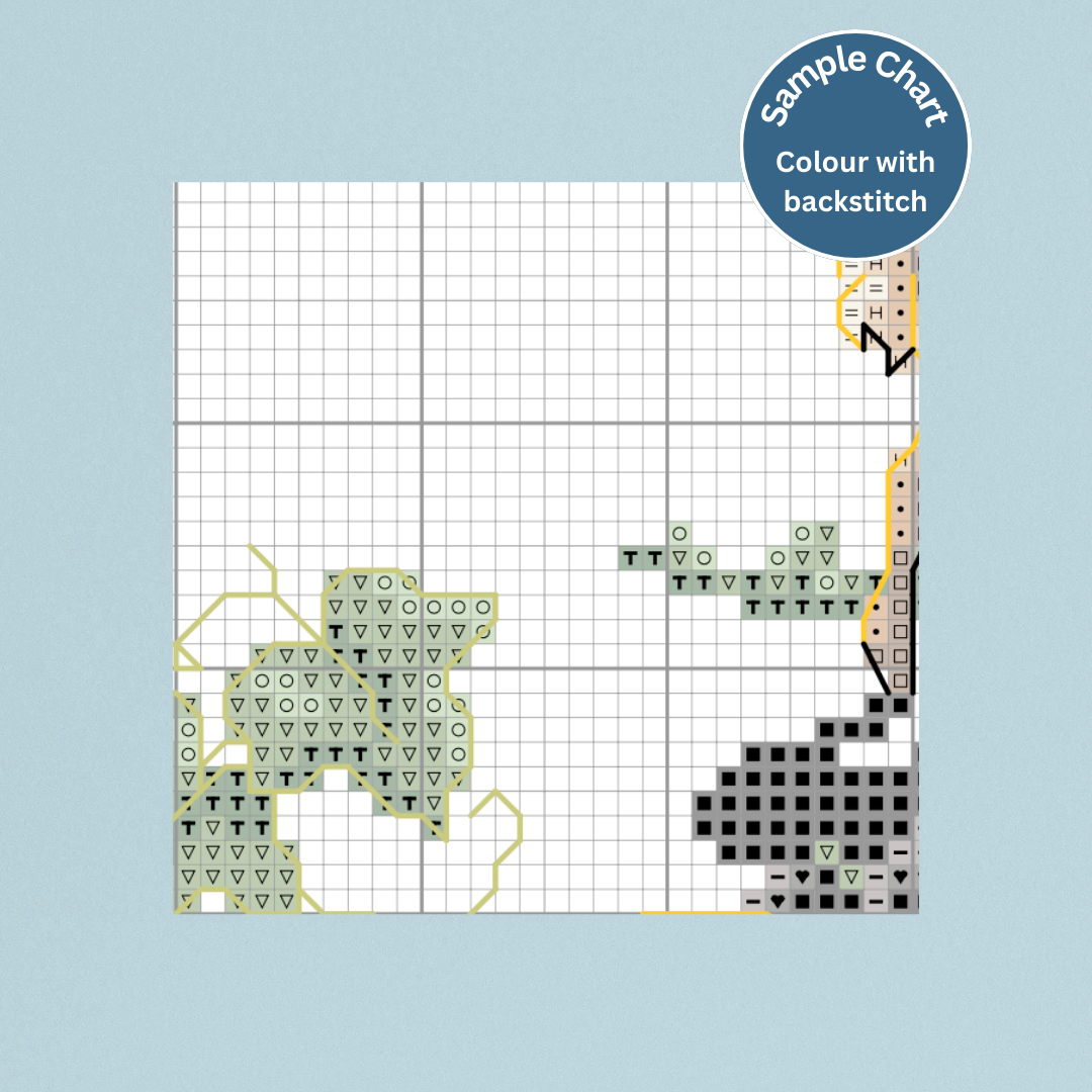 Full-colour downloadable PDF chart with backstitching clearly marked