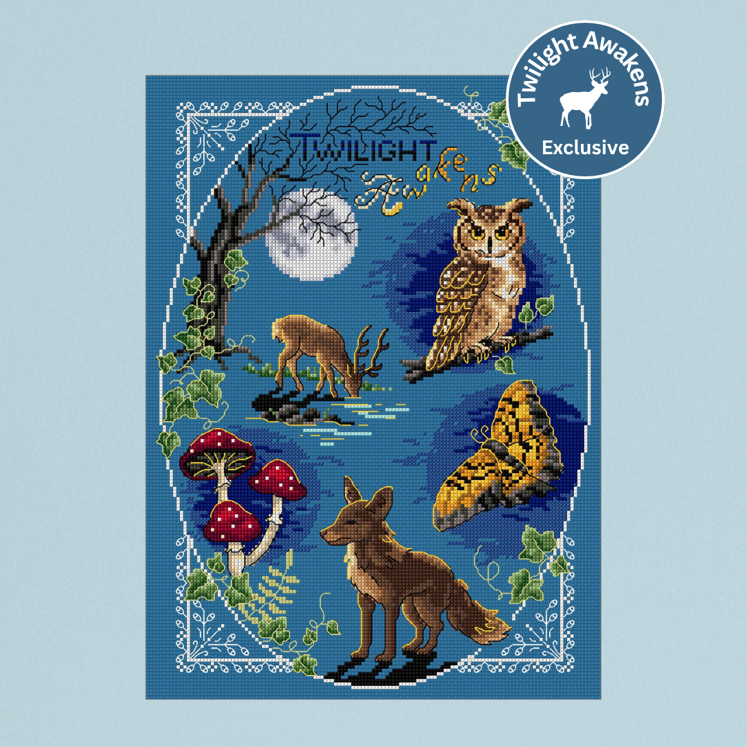 Step into a world of wonder with Twilight Awakens, an enchanting cross stitch design originally released as a mystery stitch-along. Now available in full, this atmospheric scene unfolds through intricate details and rich colours – a magical project to get lost in, stitch by stitch.