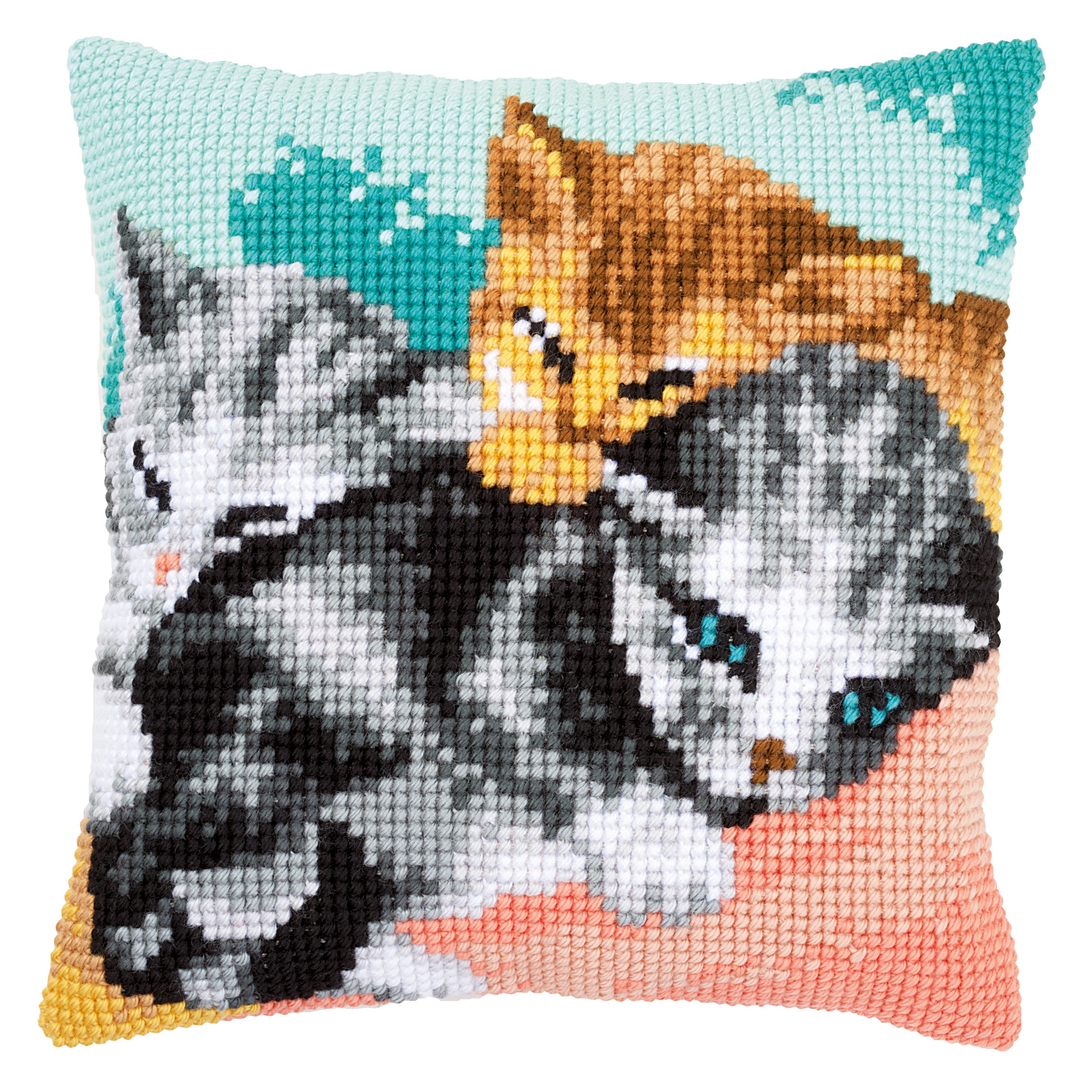 Vervaco ~ Counted Cross Stitch Cushion Front Kit ~ Cute Kittens
