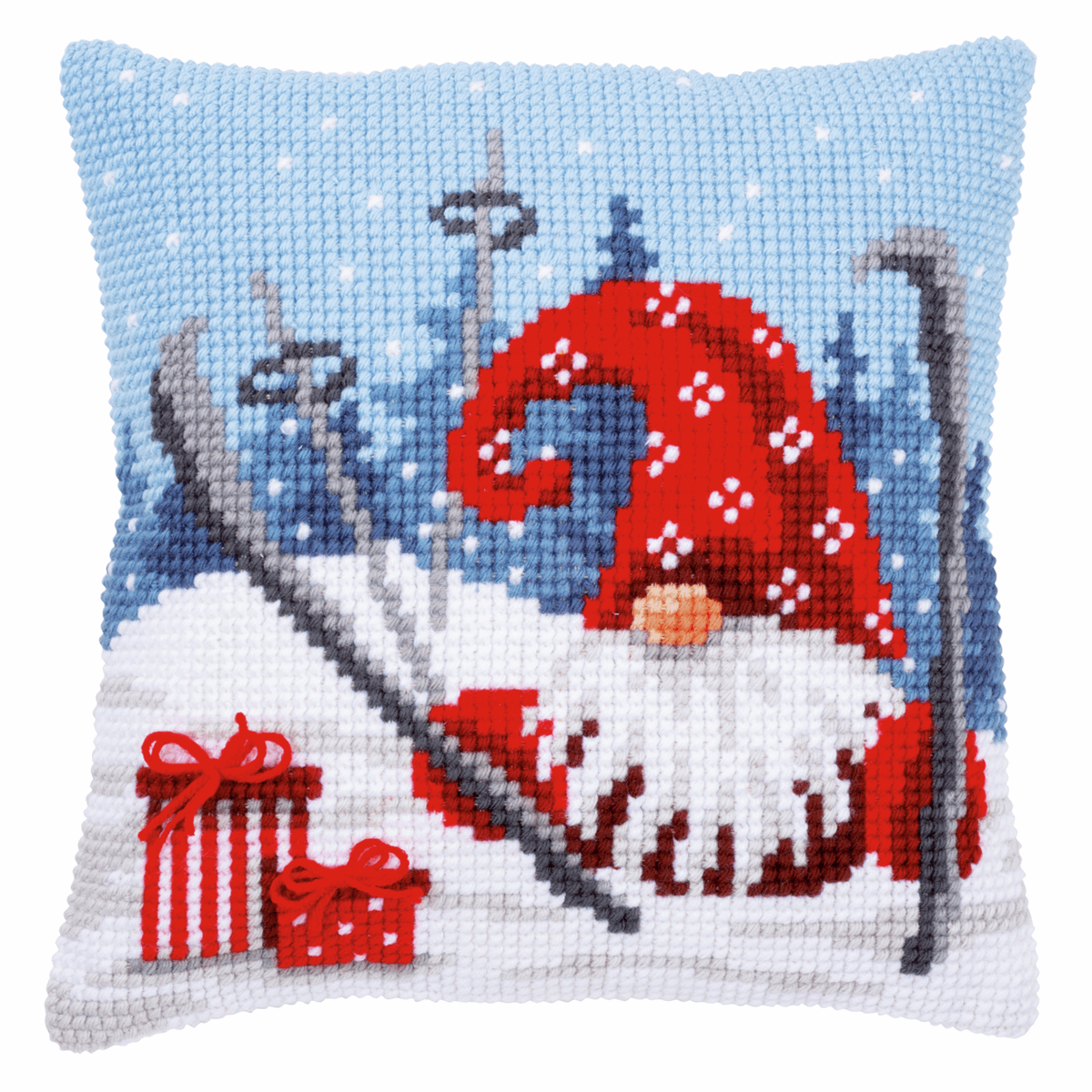 Vervaco ~ Counted Cross Stitch Cushion Front Kit ~ Christmas Gnome Skiing