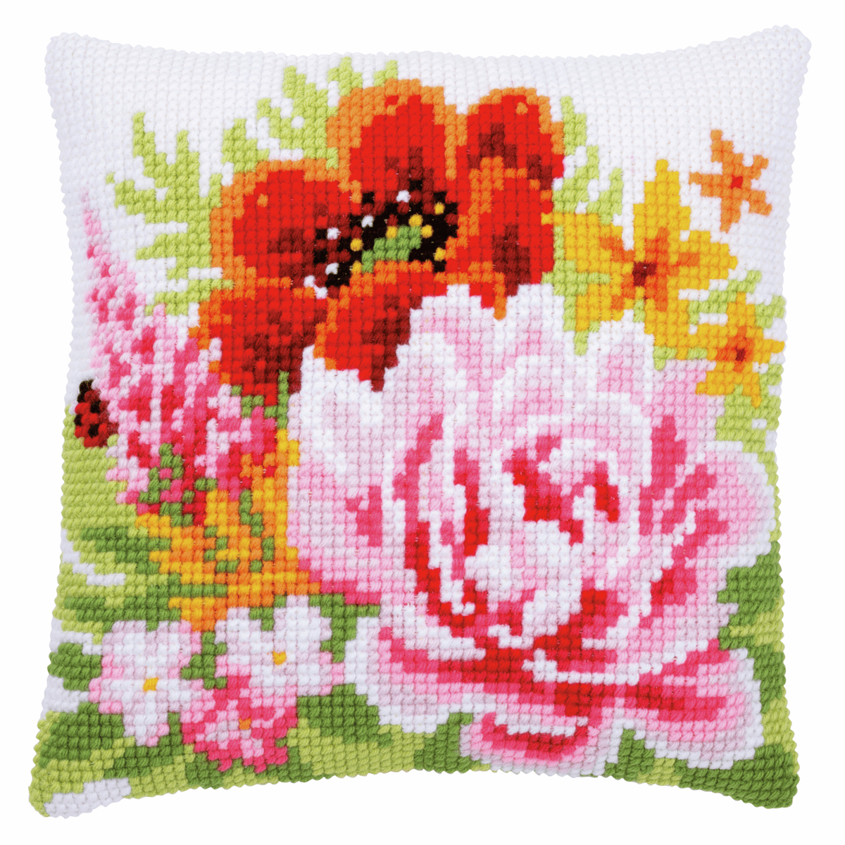 Vervaco ~ Cross Stitch Cushion Front Kit ~ Colourful Flowers