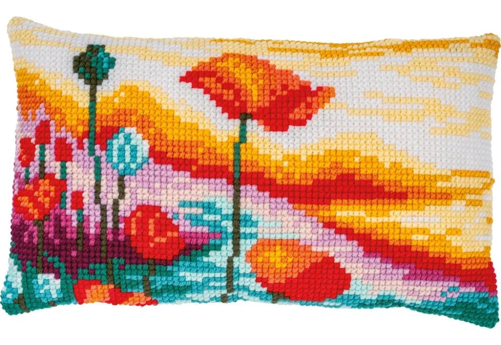Poppies Landscape Cross Stitch Cushion Front Kit - Vervaco