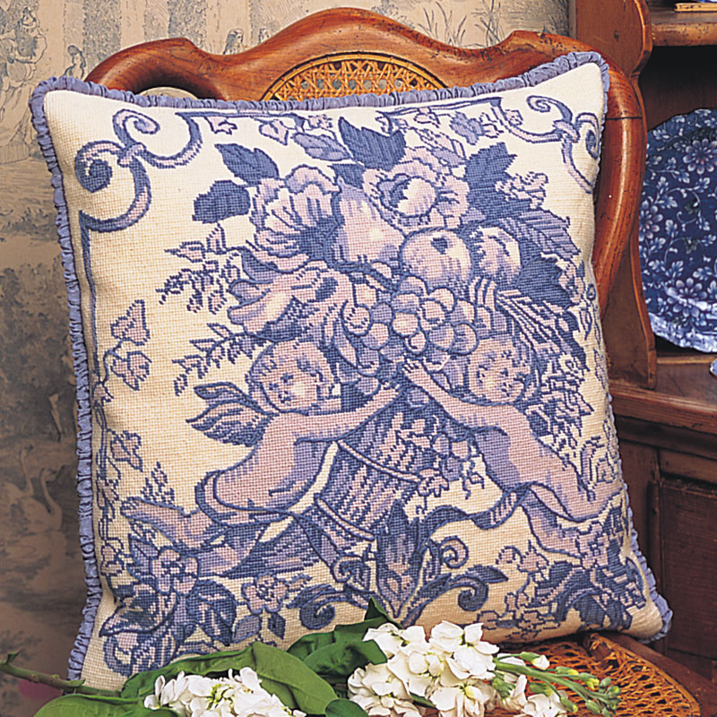 Glorafilia ~ Tapestry / Needlepoint Cushion Front Kit ~ Toile De Jouy (Blue)