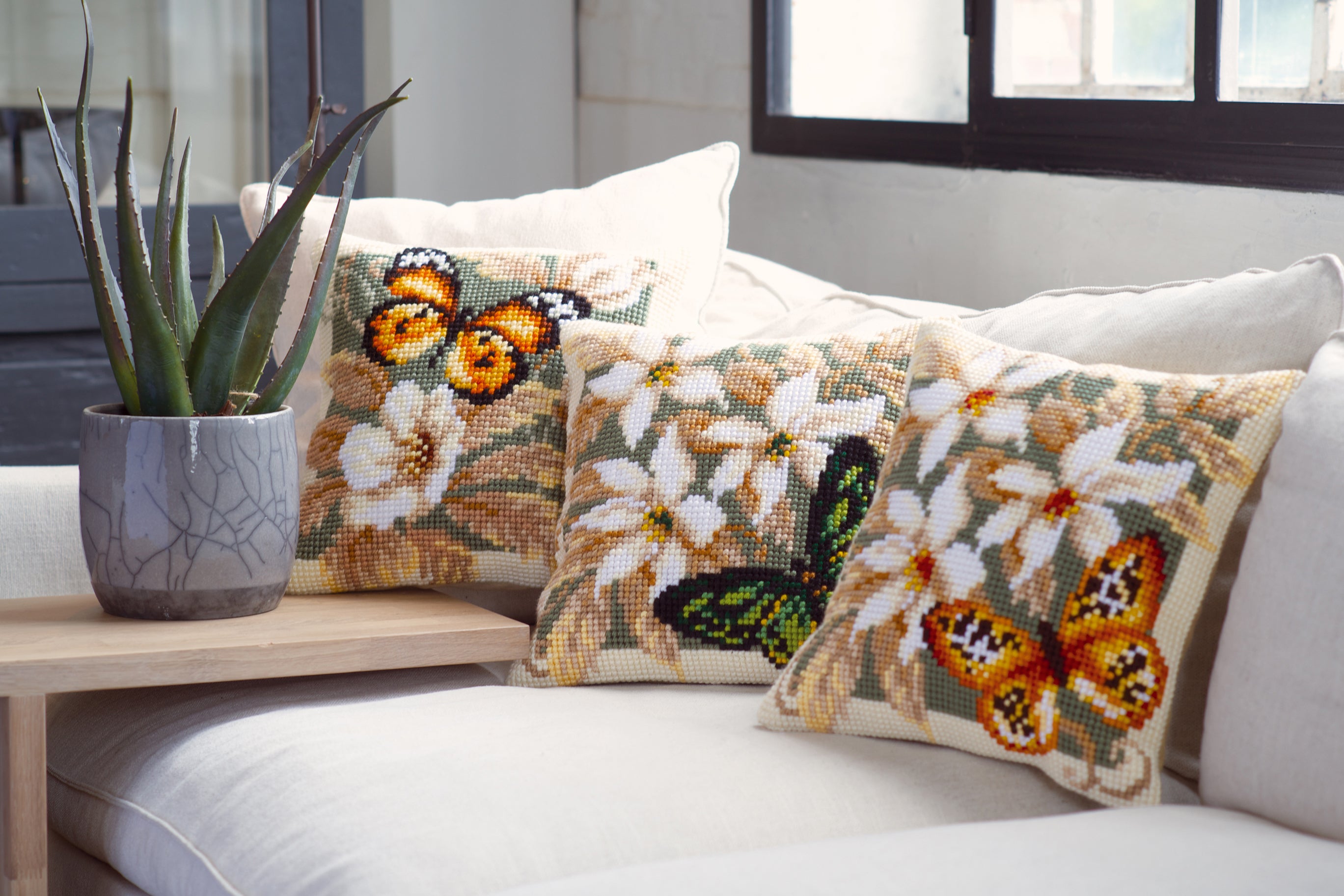 Cushion Cross Stitch Kit ~ Orange Butterfly