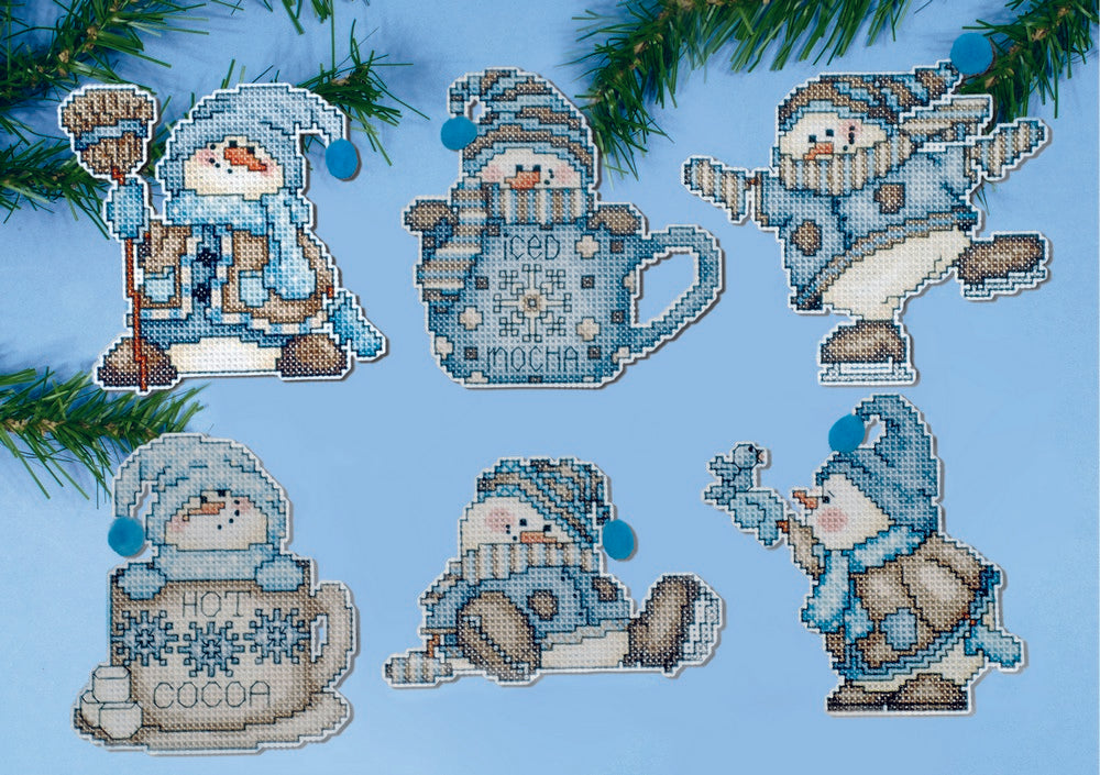 Cocoa Snowmen Ornaments Cross Stitch Kit