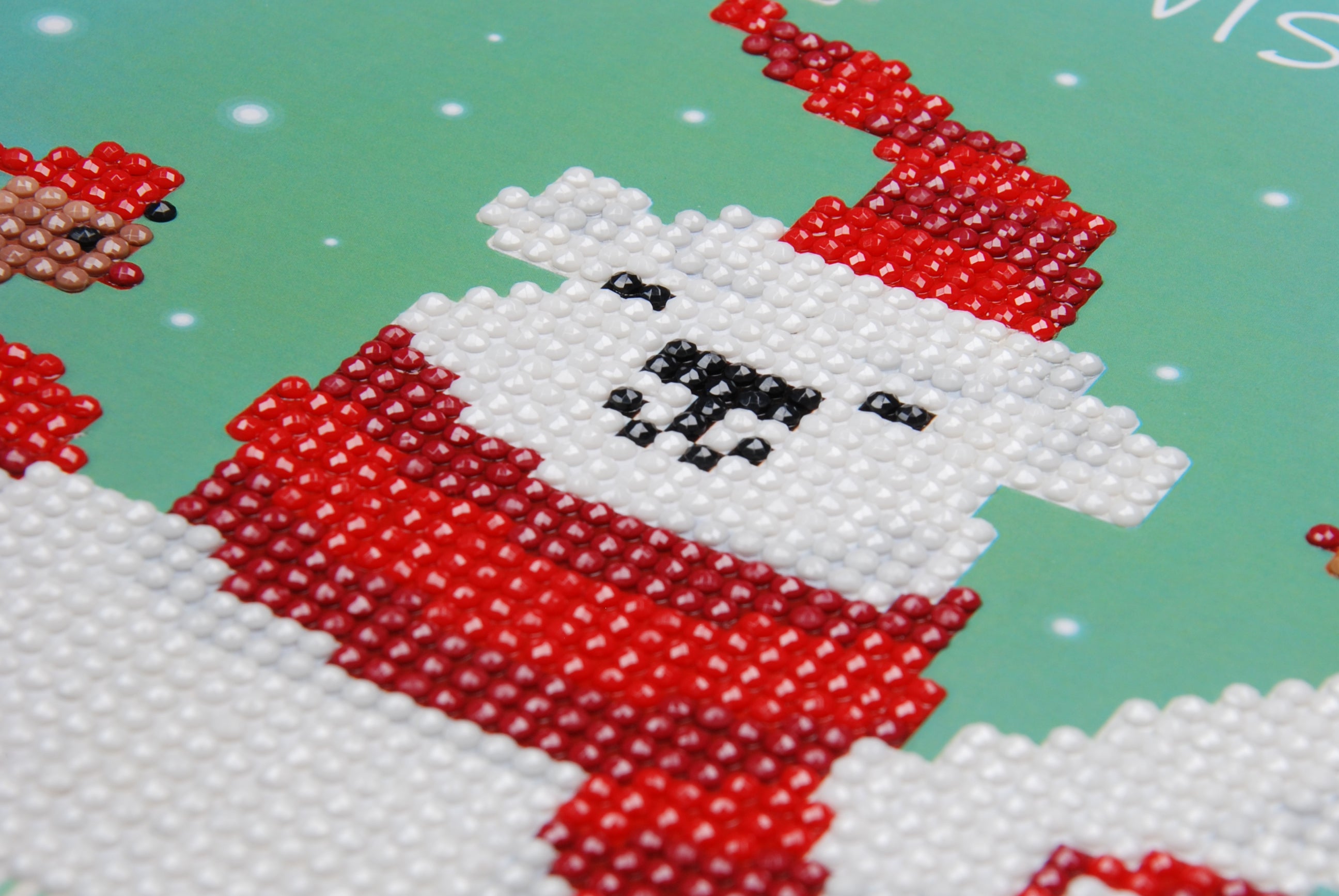- Kit contains: diamond-like facets pre-sorted by number; instructions; stylus pen; craft tray; wax caddy; plastic bags for sorting of the diamonds; colour printed greeting card and envelope.
