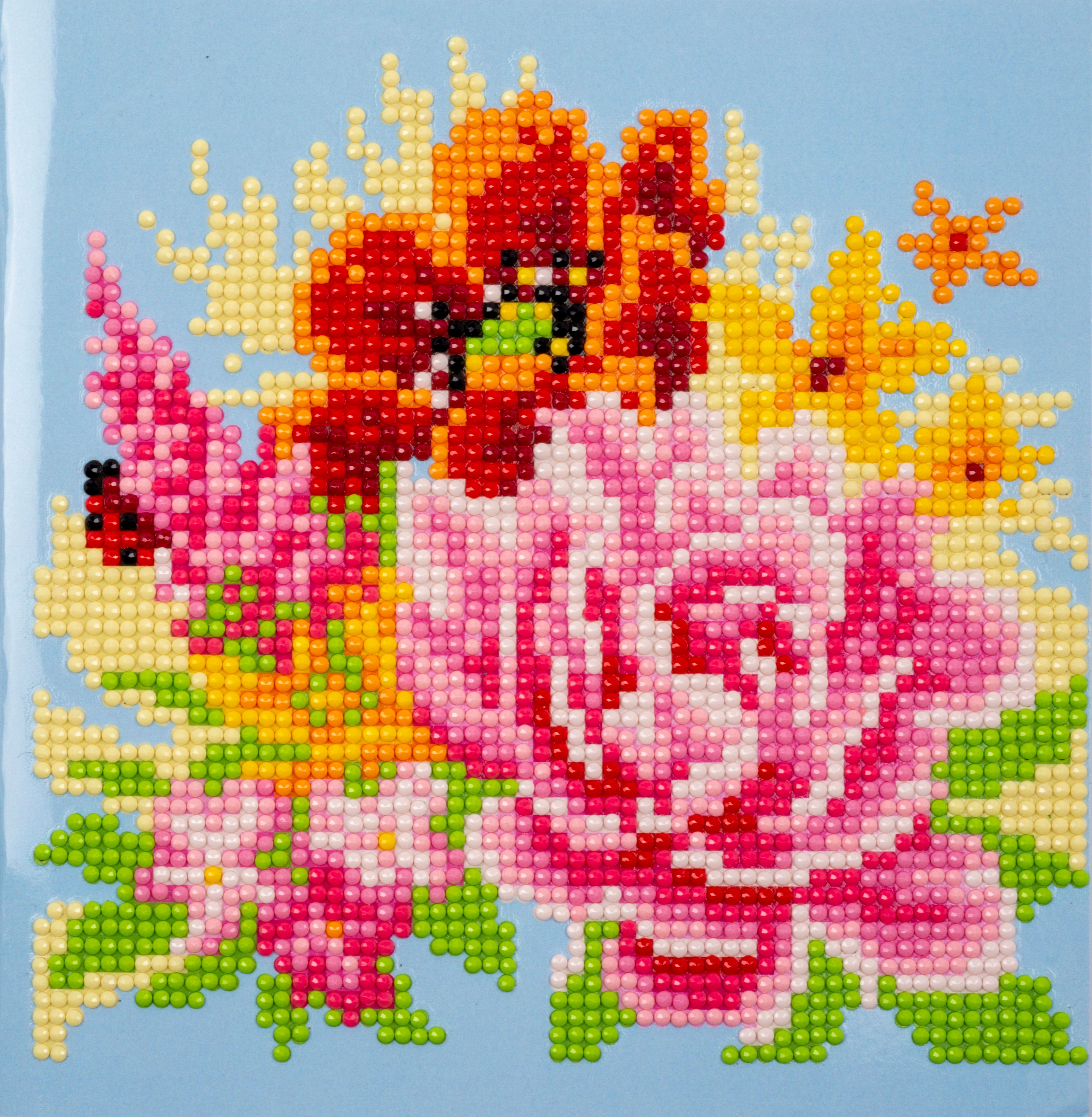 - Kit includes: colour printed greeting card and envelope; pre-sorted 'diamonds' by number; plastic bags for storing sorted 'diamonds'; 'diamond' applicator tool, craft tray and wax caddy; instructions in 8 languages (EN, NL, FR, GER, IT, SP, RU, SW).