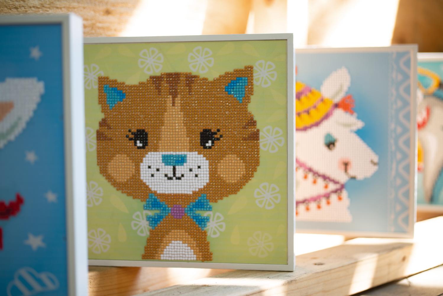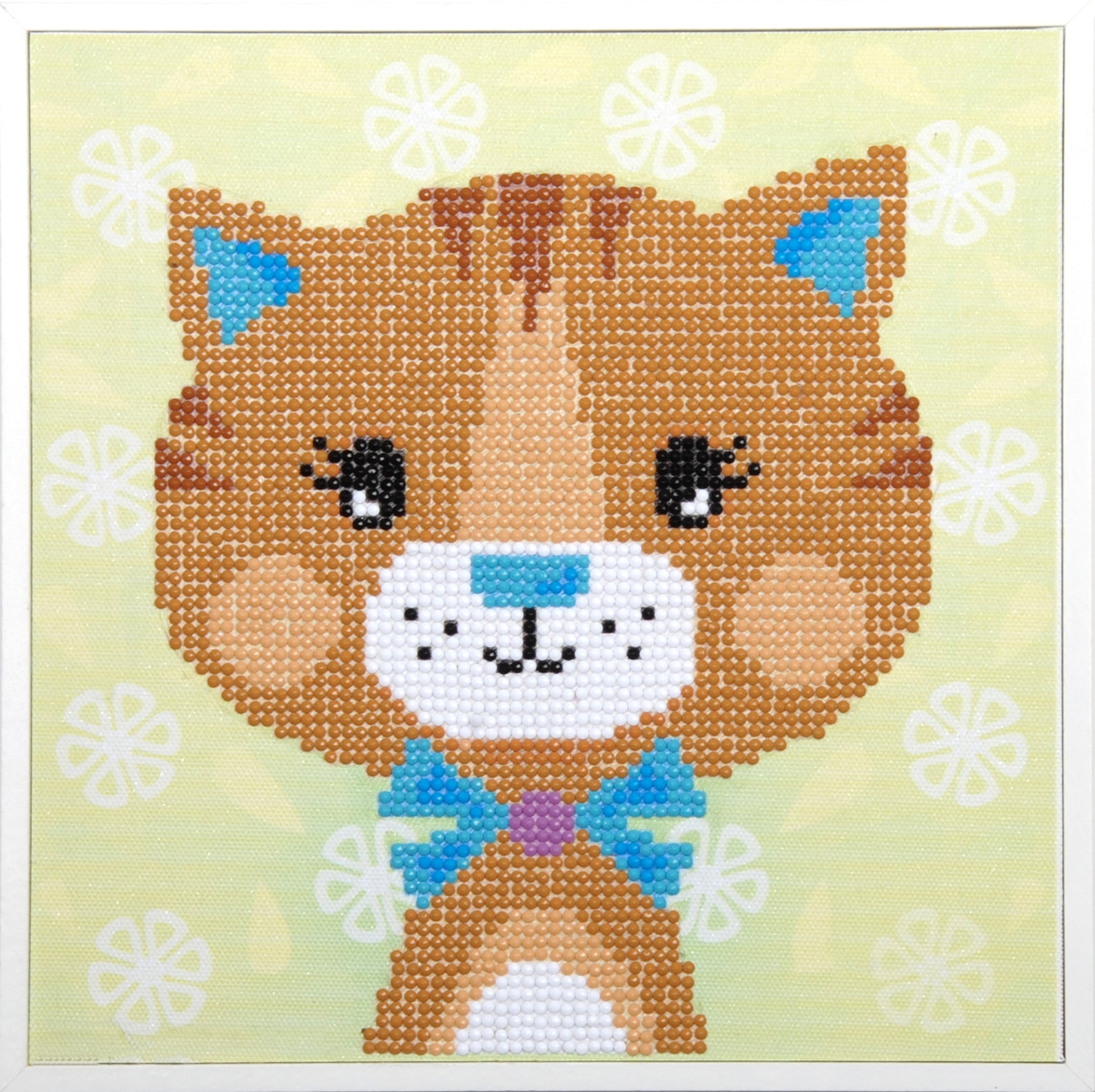 - Kit includes: high quality colour printed, 100% polyester fabric; diamond-like facets pre-sorted by number; plastic bags for storing sorted 'diamonds'; 'diamond' applicator tool, craft tray and wax caddy; instructions.