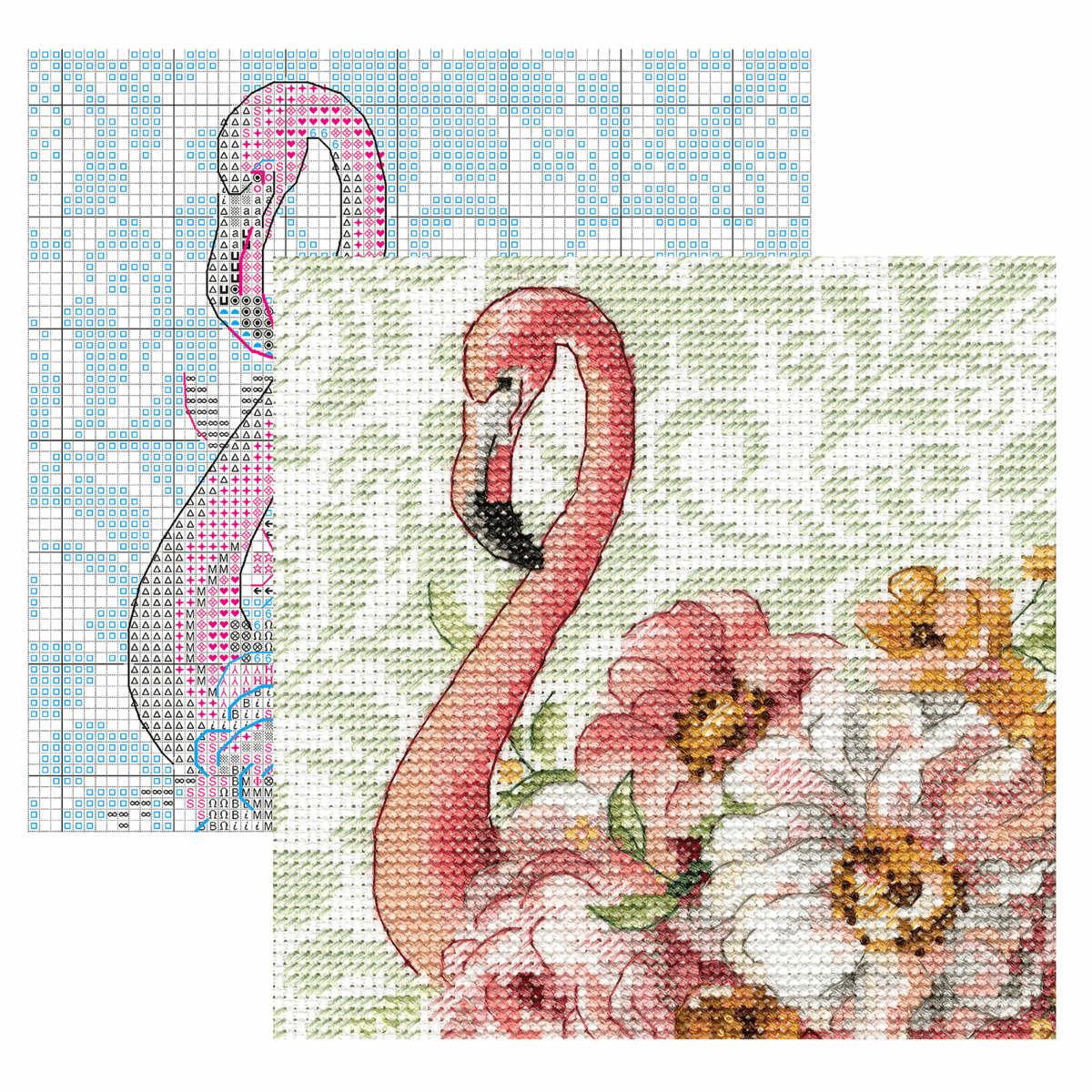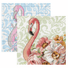 The plumage of a flamingo is accented with an array of beautiful blossoms in this elegant cross stitch design from Dimensions.