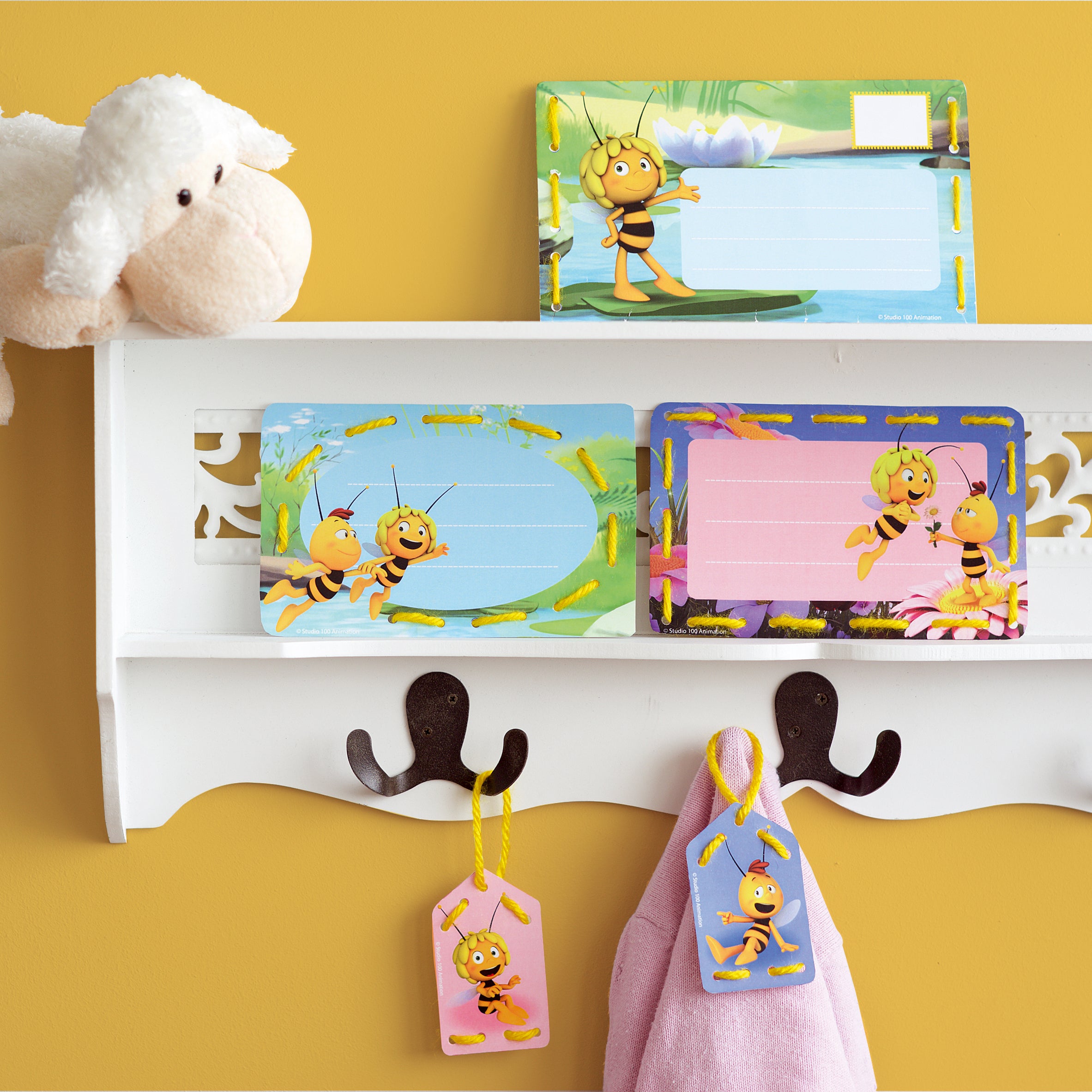 - Perforated designs to be embroidered with thick acrylic yarn.
