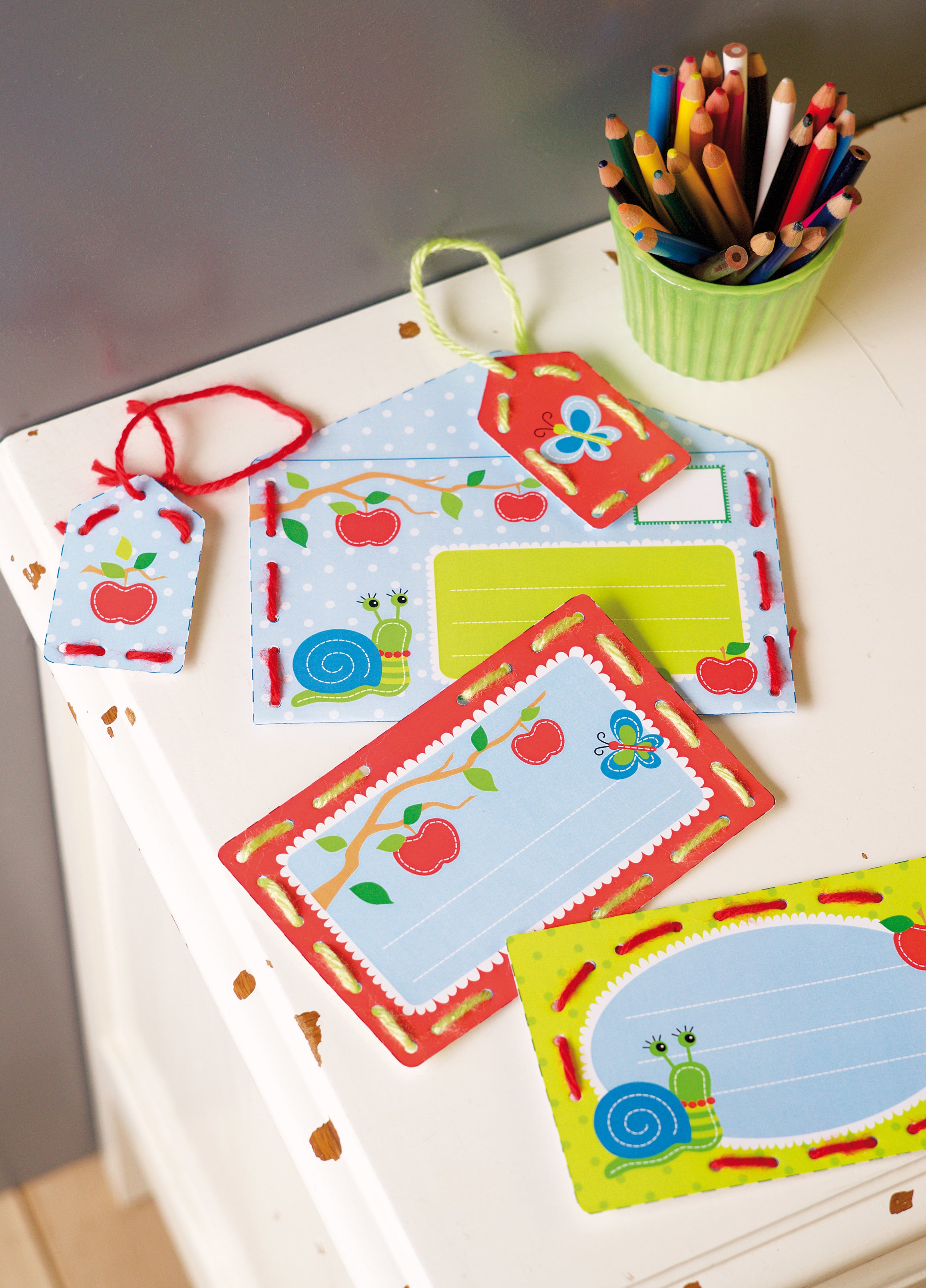 - Embroidery kit of 5 pieces making 2 cards, 2 tags and one envelope.