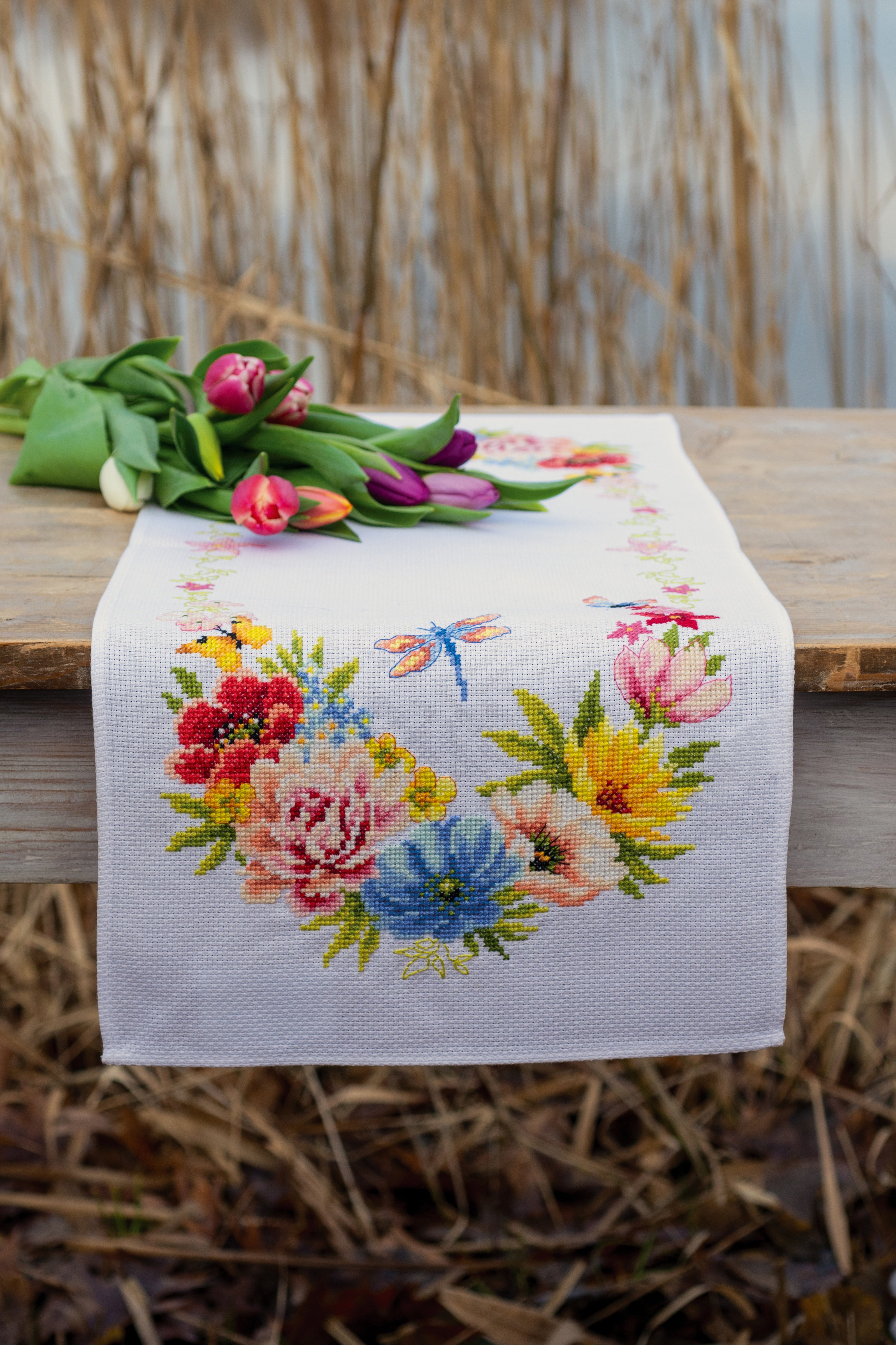 Table Runner Counted Cross Stitch Kit ~ Colourful Flowers