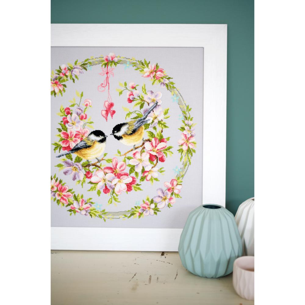 Counted Cross Stitch Kit ~ Great Tits in Flower Wreath