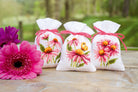 • Set of 3 gift or pot-pourri bags with counted cross stitch designs.